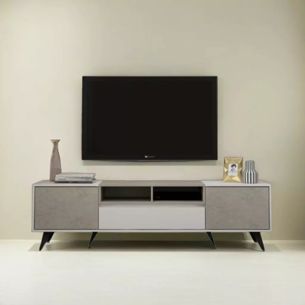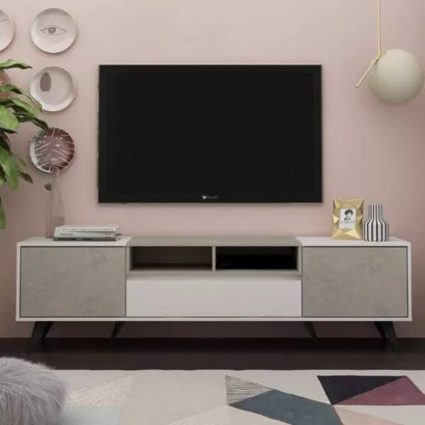 طاولة تلفزيون بيوما ابيض ورمادي فاتح