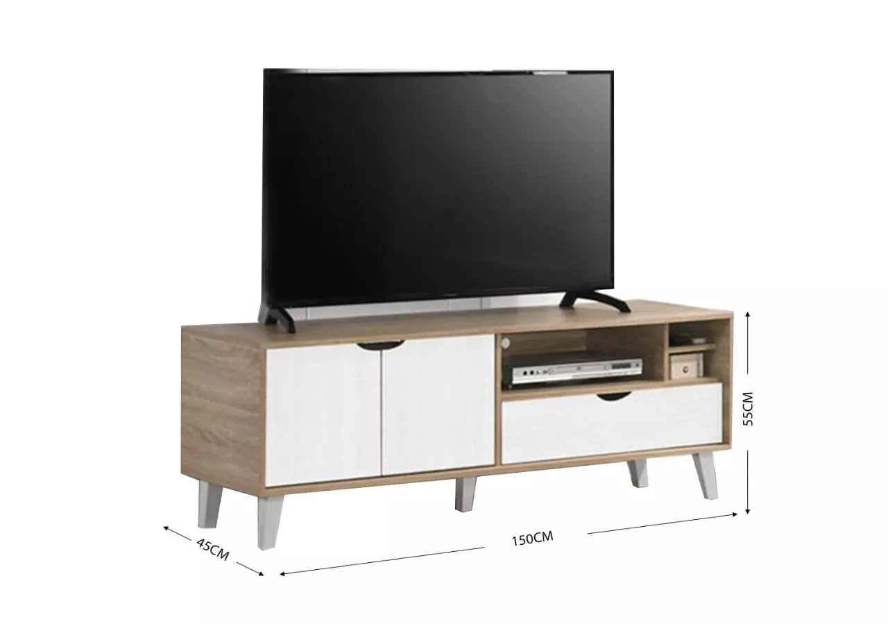 | أبعاد طاولة التلفزيون | العرض: 150 سم، العمق: 45 سم، الارتفاع: 55 سم |