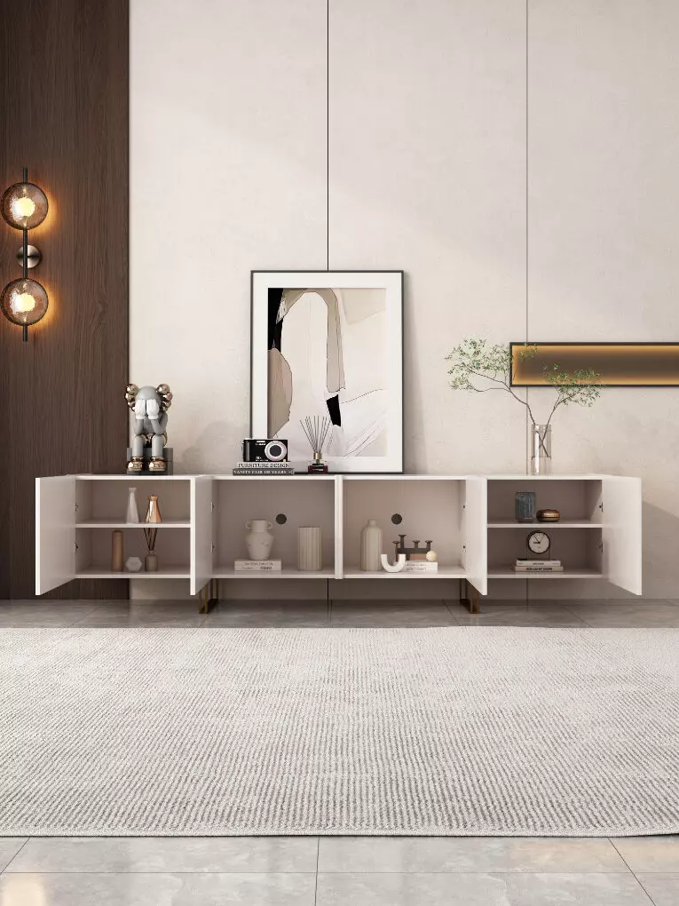سطح واسع: توفر الطاولة سطحًا واسعًا لوضع التلفزيون وأجهزة الصوت والفيديو وغيرها من العناصر.