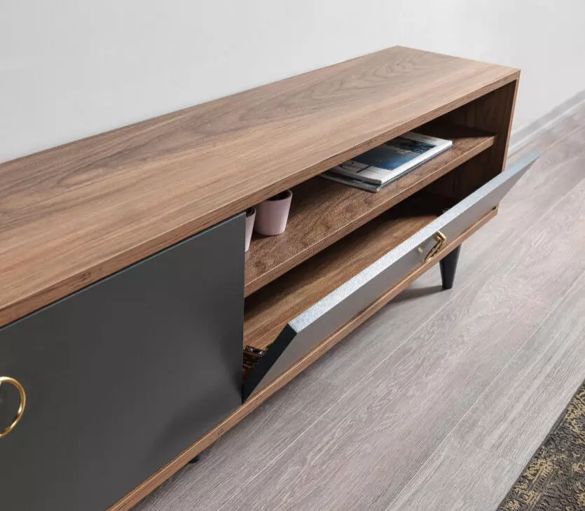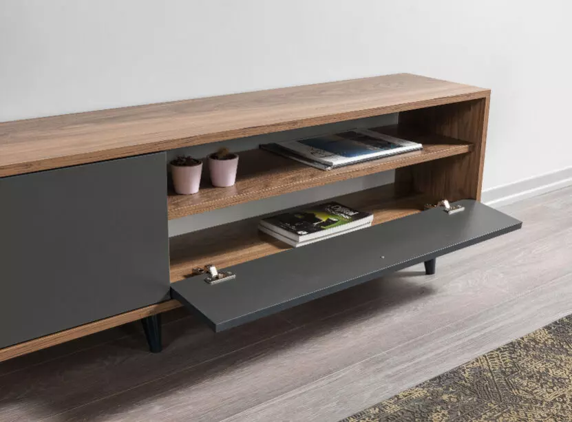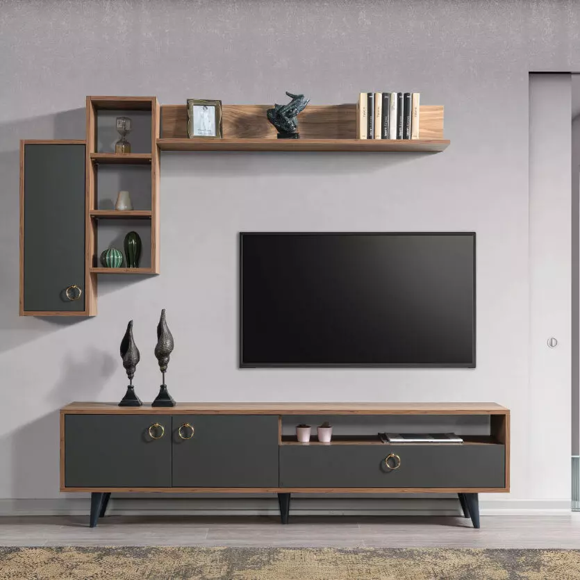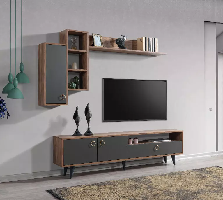 | يتضمن الطقم | طاولة تلفزيون مع وحدة رفوف جدارية متصلة |