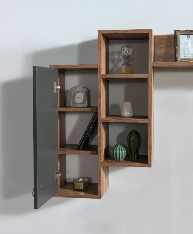 | أبعاد المنتج | طاولة التلفزيون : الارتفاع 47.2 سم * العرض 180 سم * 29.6 سم , الرفوف : العرض الكلي : 175.4 سم , الرف الأفقي : الارتفاع 19.6 سم * العرض 120 سم * العمق 19.6 سم , وحدة الرفوف العمودية المفردة : الارتفاع 72 سم * العرض 25 سم * العمق 22 سم |