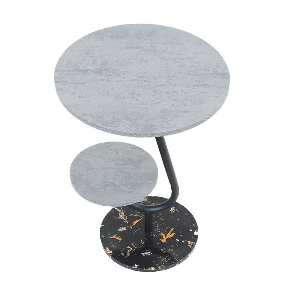 طاولة جانبية بقاعدة رخام لاريكا - رمادي وأسود رخامي