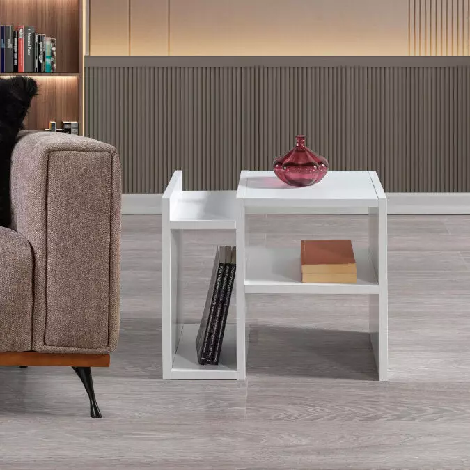 طاولة جانبية بيلون إلم كوف - ابيض