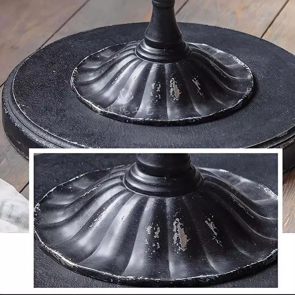 • سطح خشبي متين وقاعدة معدنية سوداء.