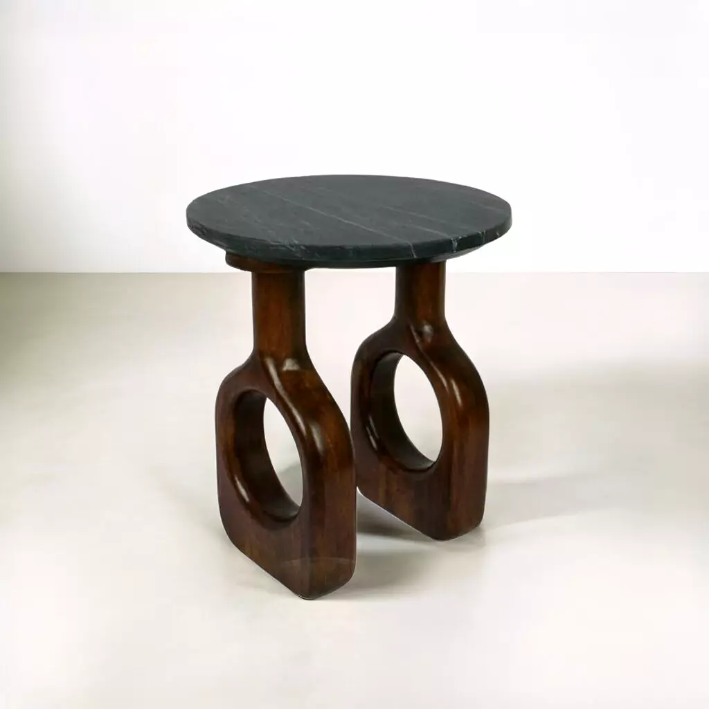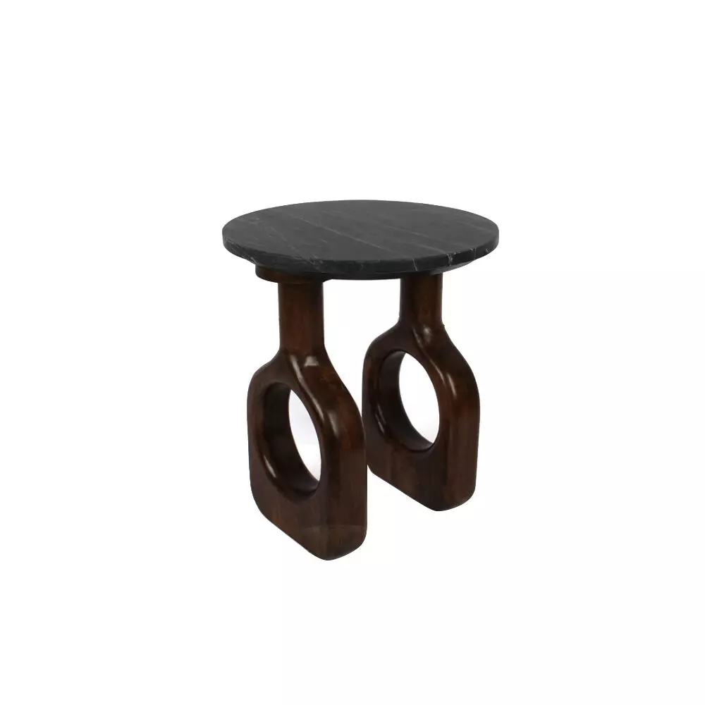 طاولة جانبية سطح رخام فينولر - اسود وخشبي غامق