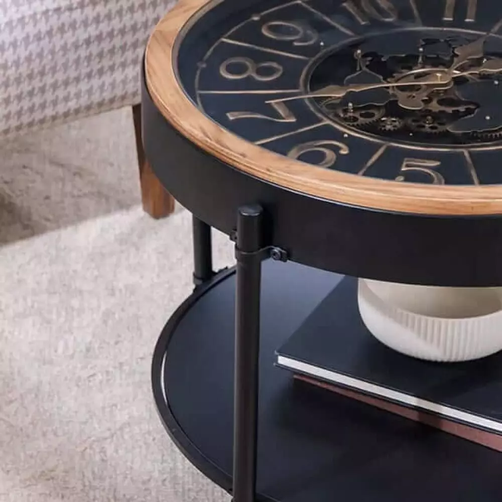 أنت تراجع:طاولة جانبية سطح ساعة حديد وخشب