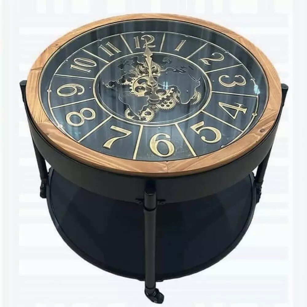 طاولة جانبية بتصميم مميز وفريد بسطح ساعة . مصنوعة من خامات عالية الجودة لتضمن لك القوة والمتانة .