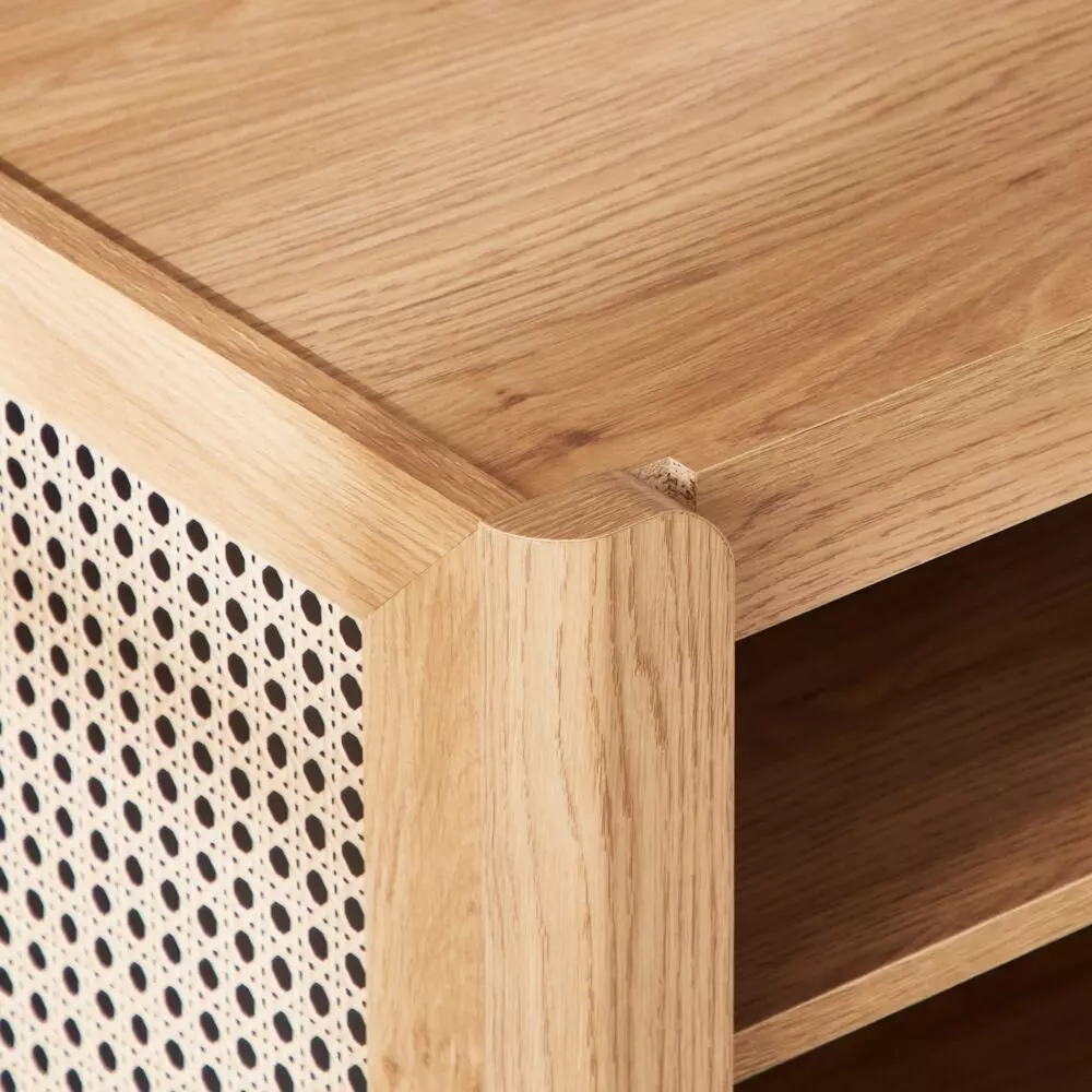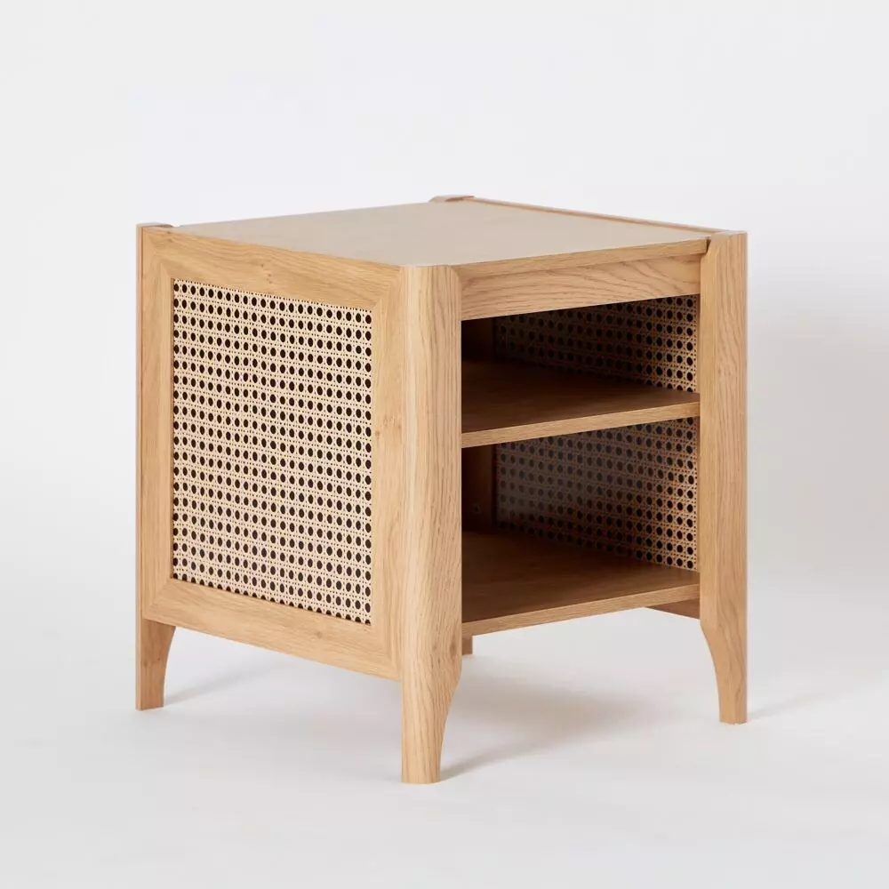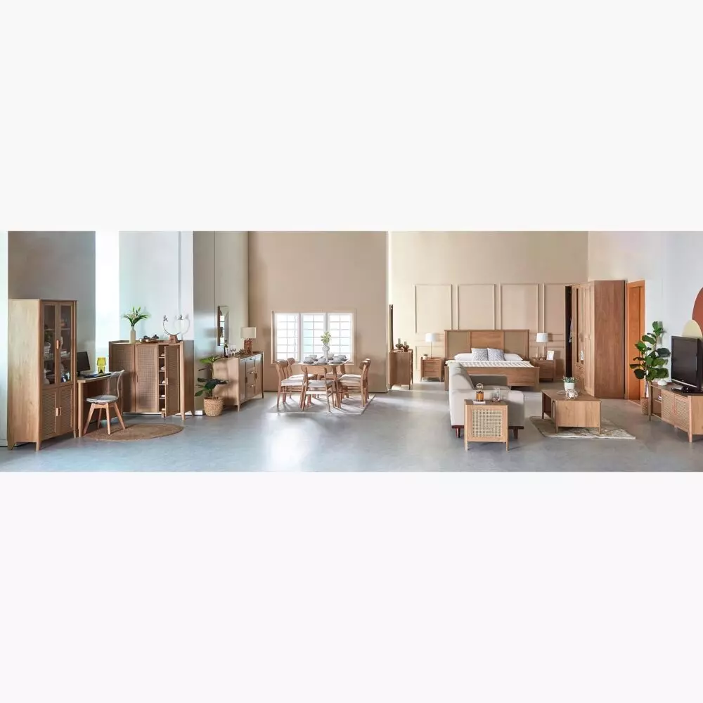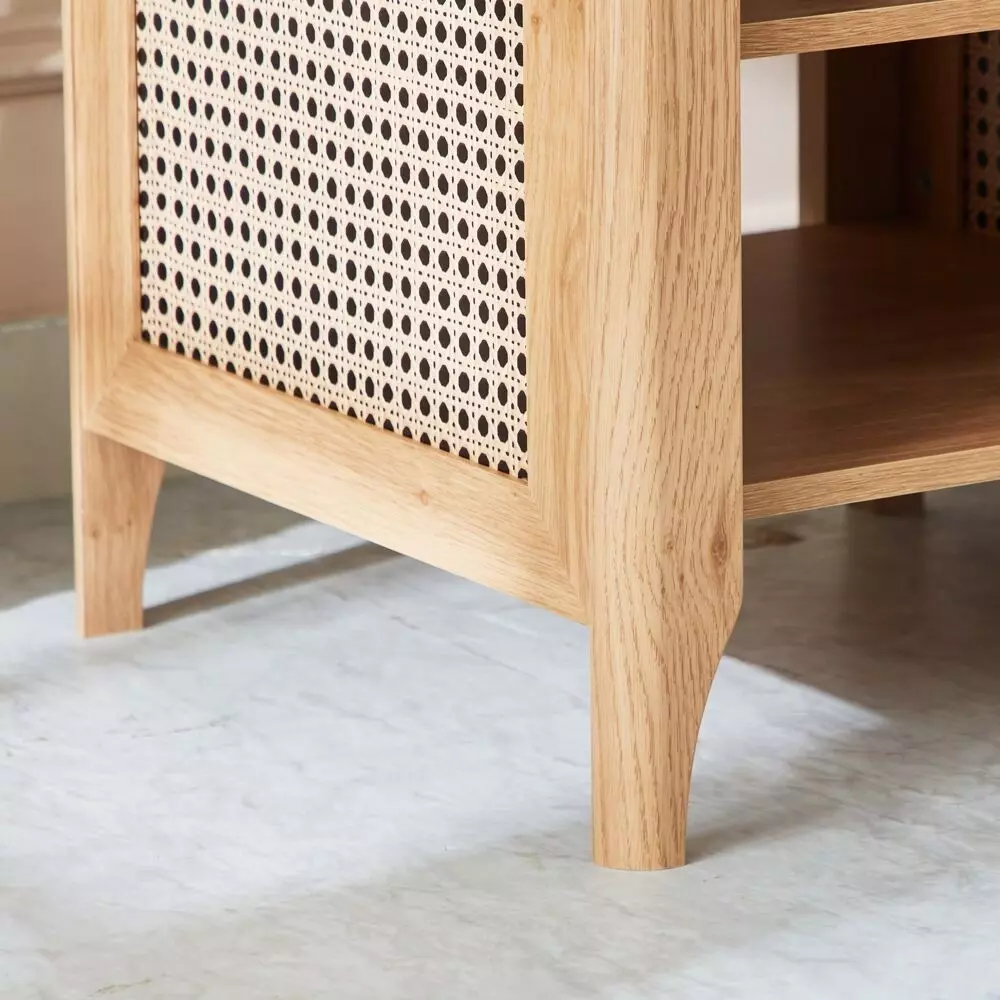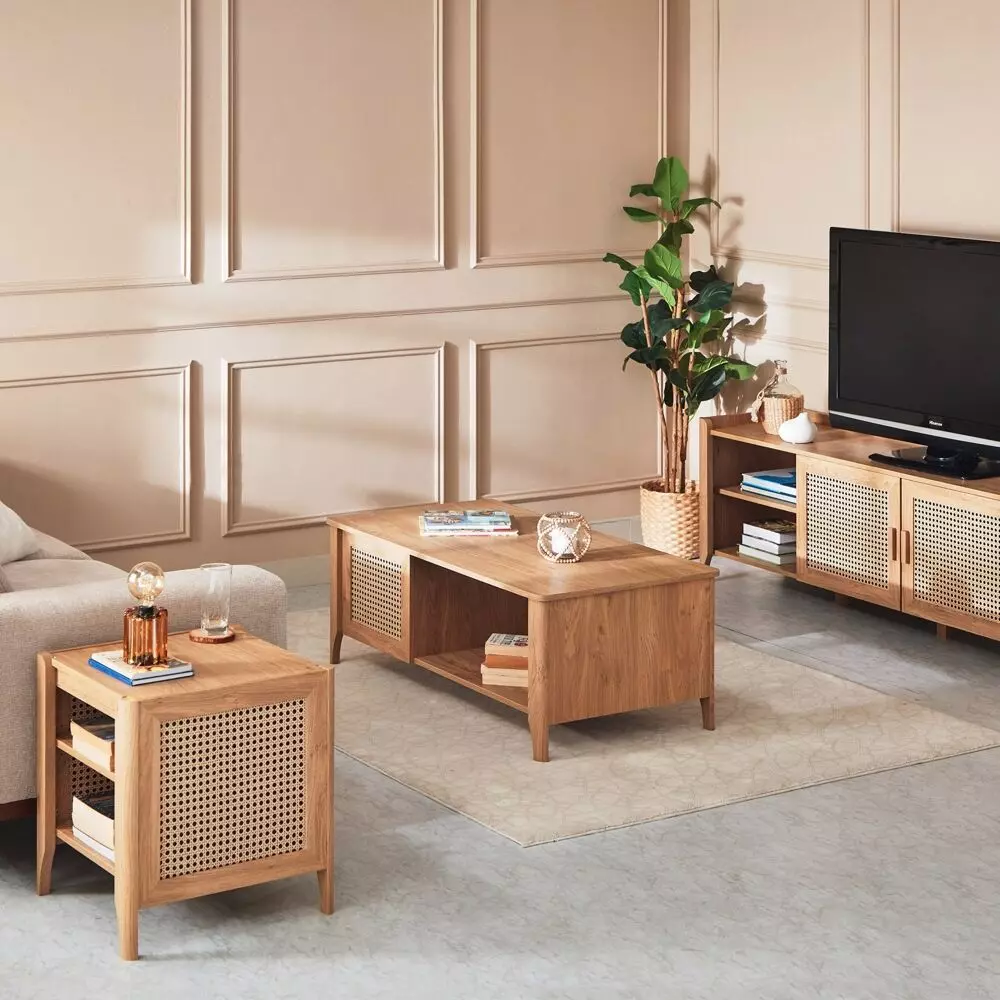 تستعرض هذه الطاولة الجانبية ألواح مطبوعة بنمط الروطان، لتعكس اختياراتك الكلاسيكية. تم تصنيعها باستخدام خشب عالي الجودة ومتين مع لمسة نهائية مقاومة للخدش والبقع. سهلة التنظيف، ويمكن وضعها بالقرب من منطقة المعيشة لتنظيم القطع الفنية والمزيد.