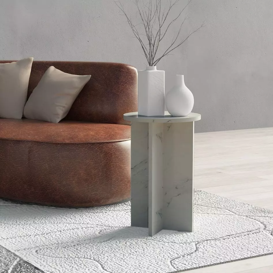 طاولة جانبية مودرن كاتاليا - أسود وأبيض رخامي