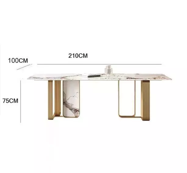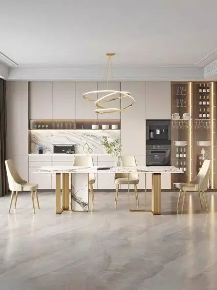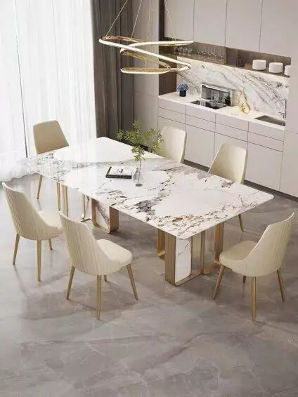 طاولة طعام مودرن جوليان 6 أشخاص - لون أبيض رخامي وذهبي