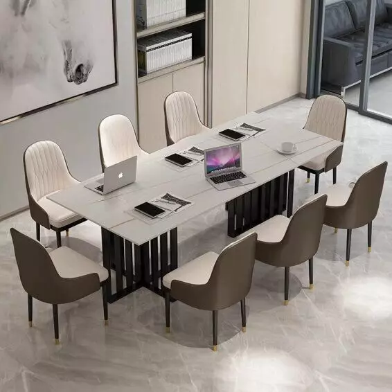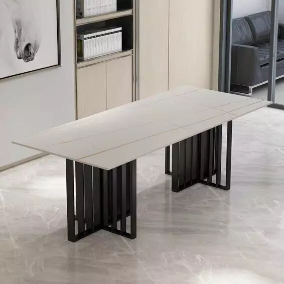 • مواد عالية الجودة: سطح اللوح الصخري والقاعدة الفولاذية تضمن لك طاولة تدوم طويلاً وتحافظ على جمالها بمرور الوقت.