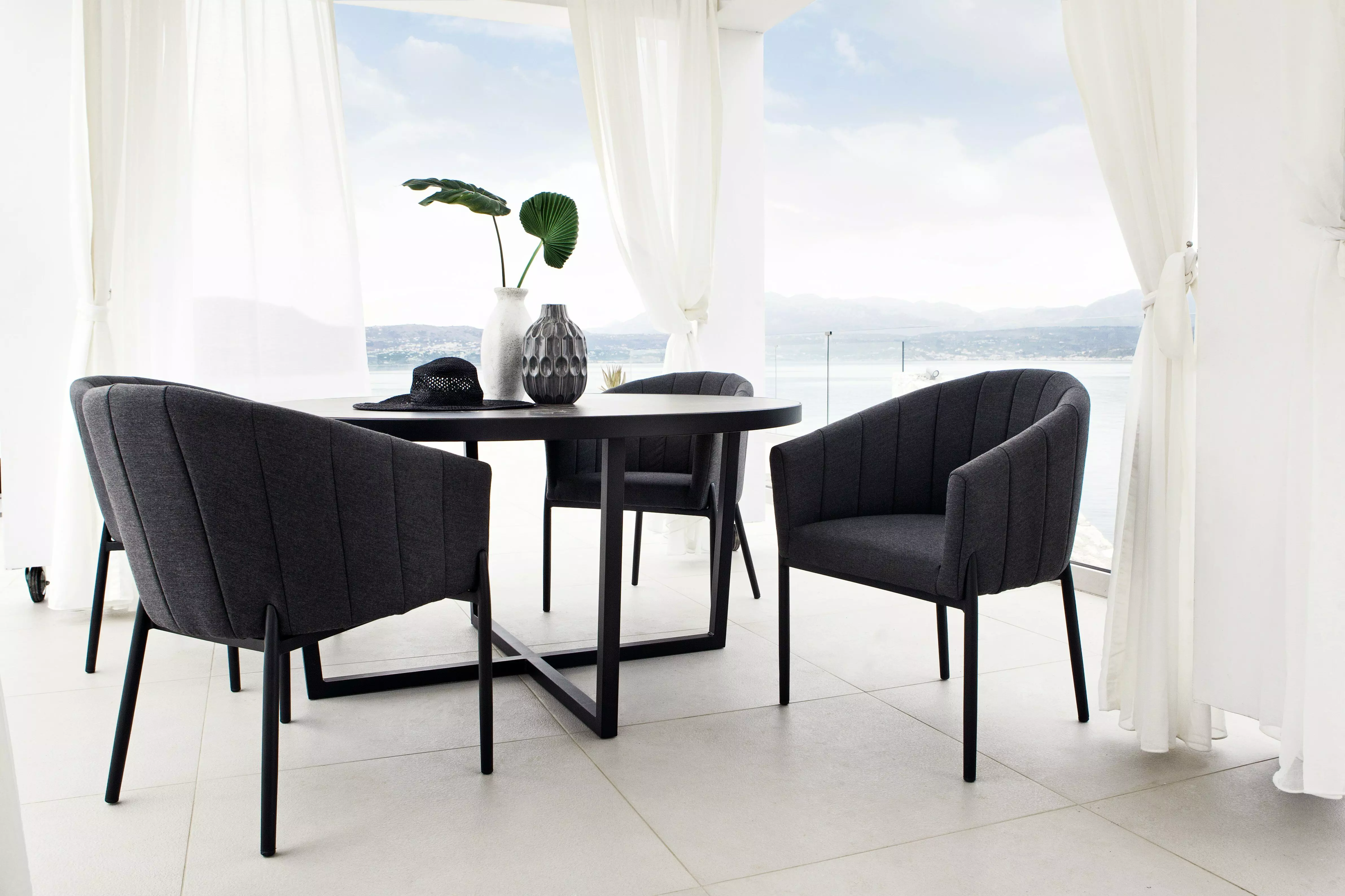 | أبعاد المنتج | طاولة قطر 150 سم - ارتفاع 74 سم كراسي طعام - 64X67X85 |