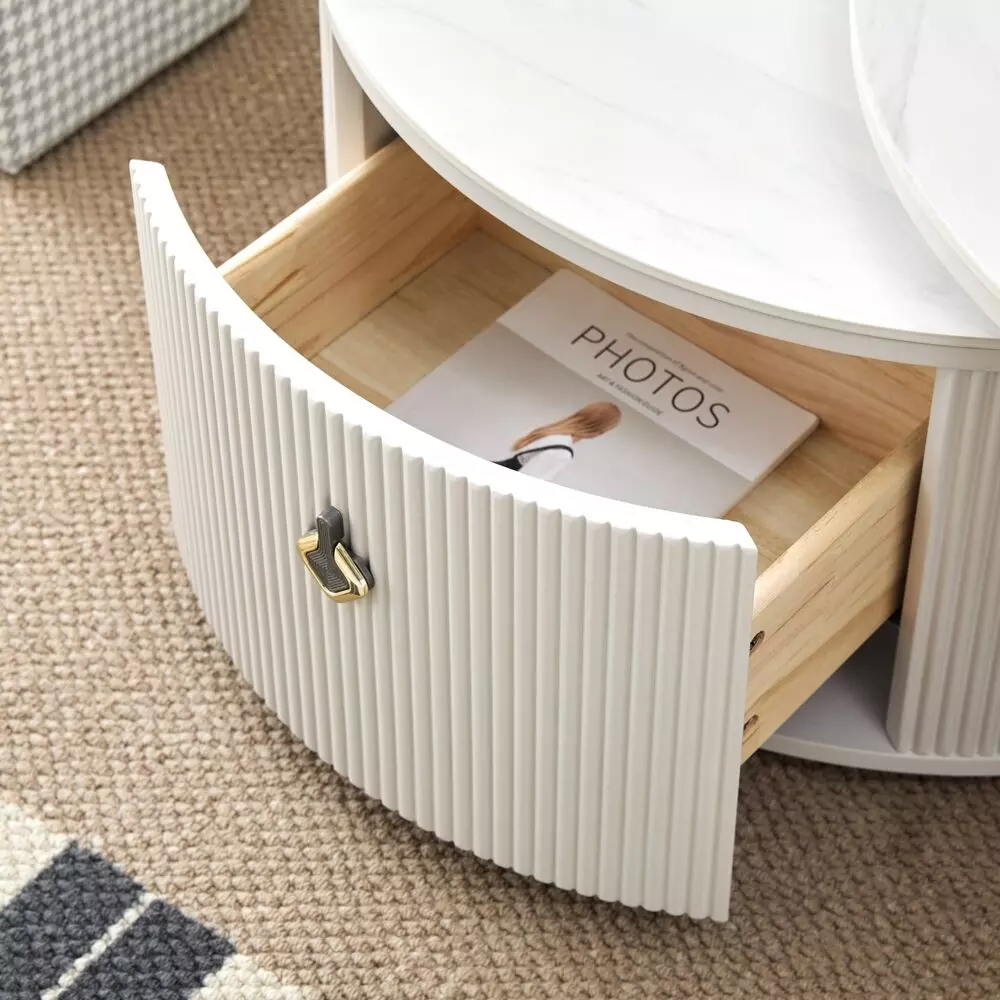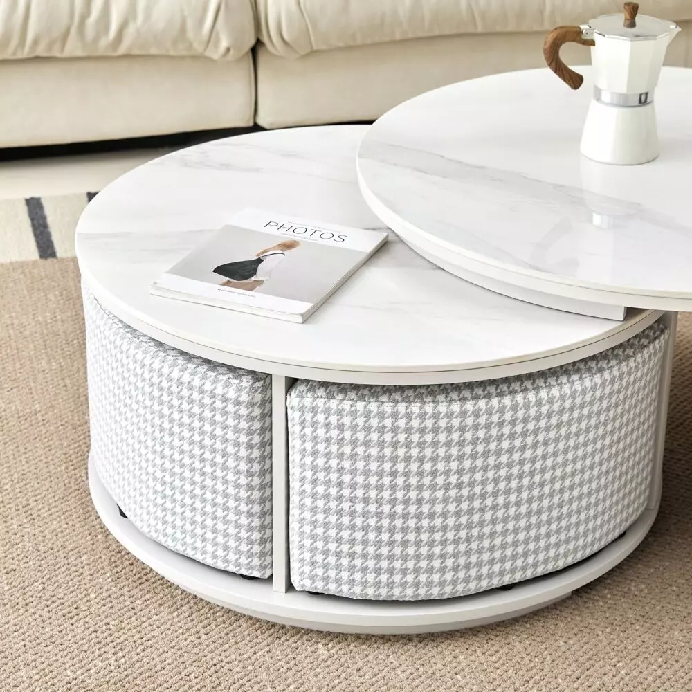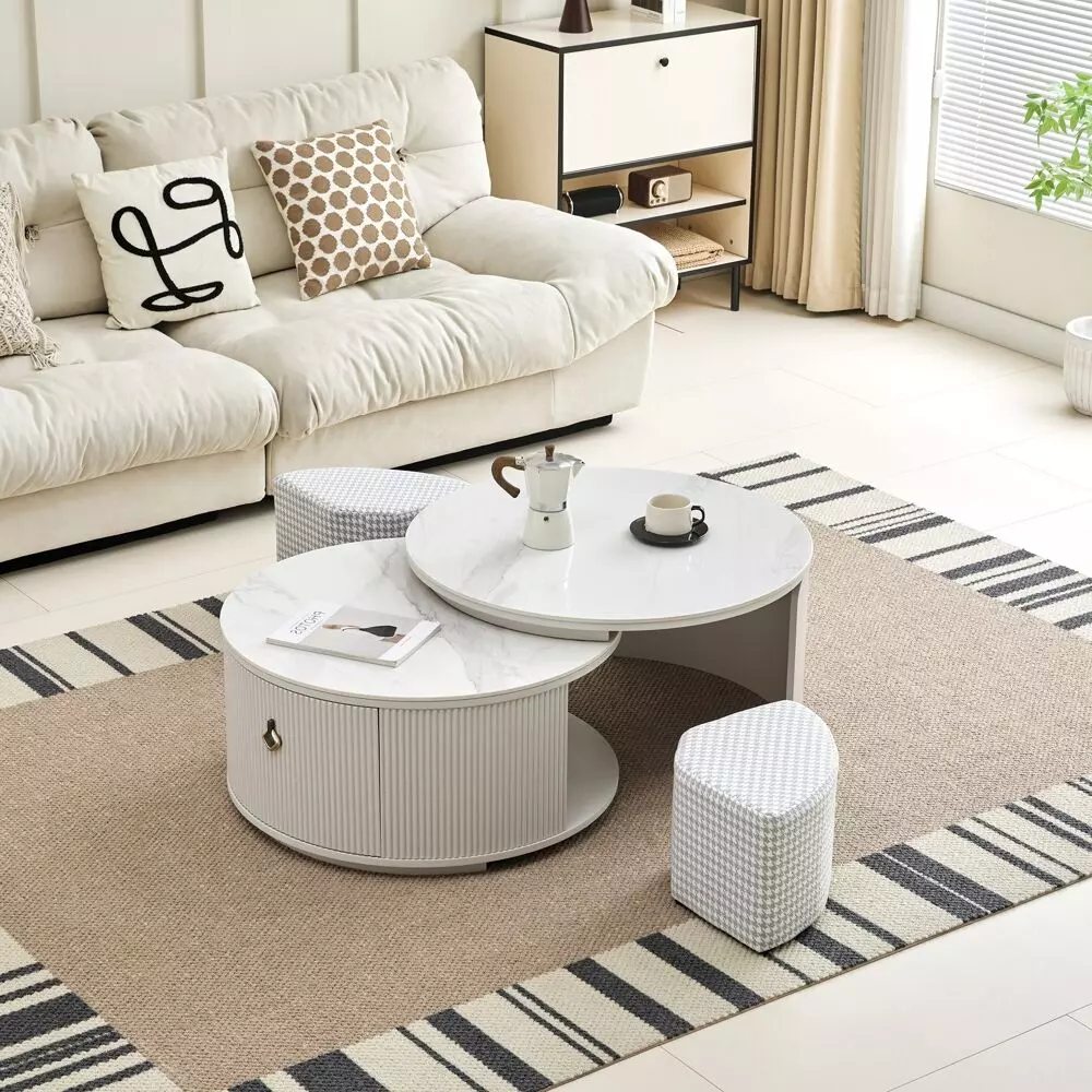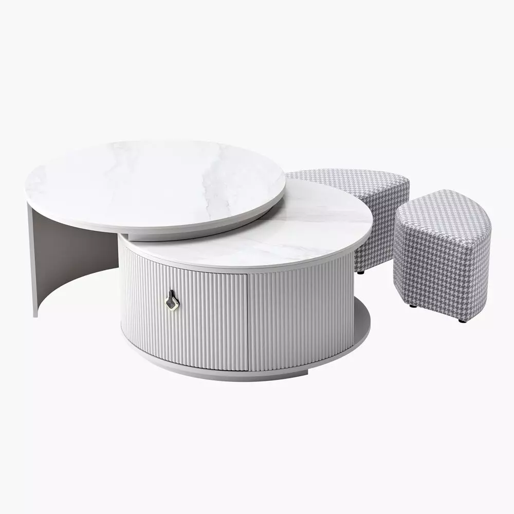 طاولة 1 القُطر: 80 سم x الوزن: 55 كجم x الارتفاع: 36.7 سم طاولة 2 القُطر: 70 سم x الارتفاع: 42 سم |