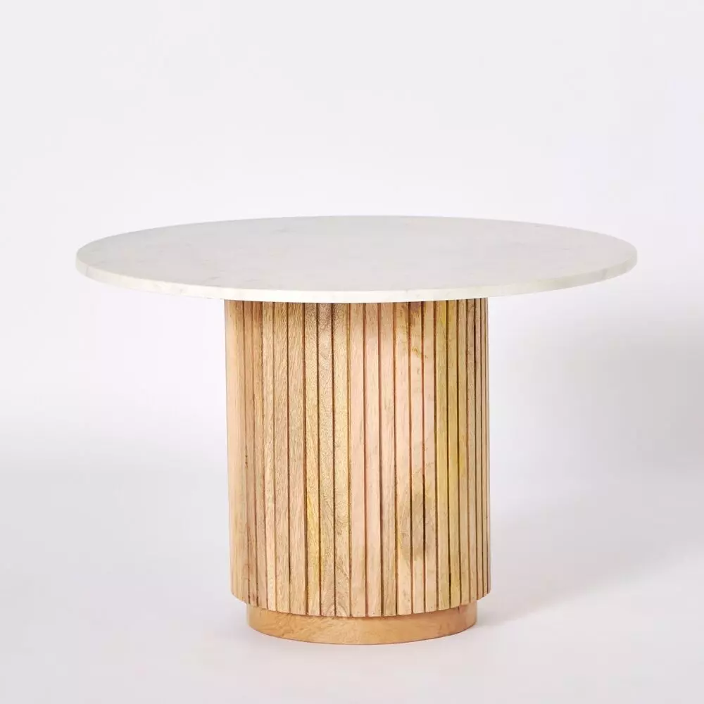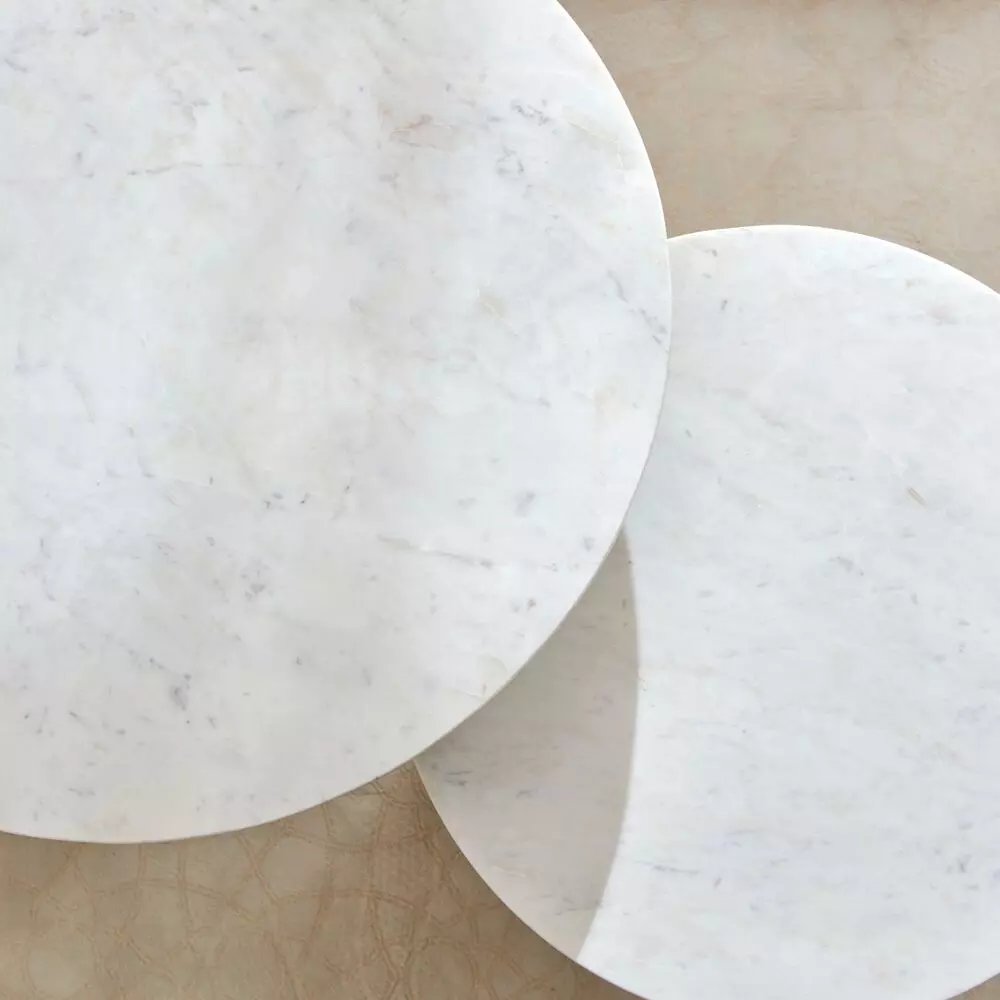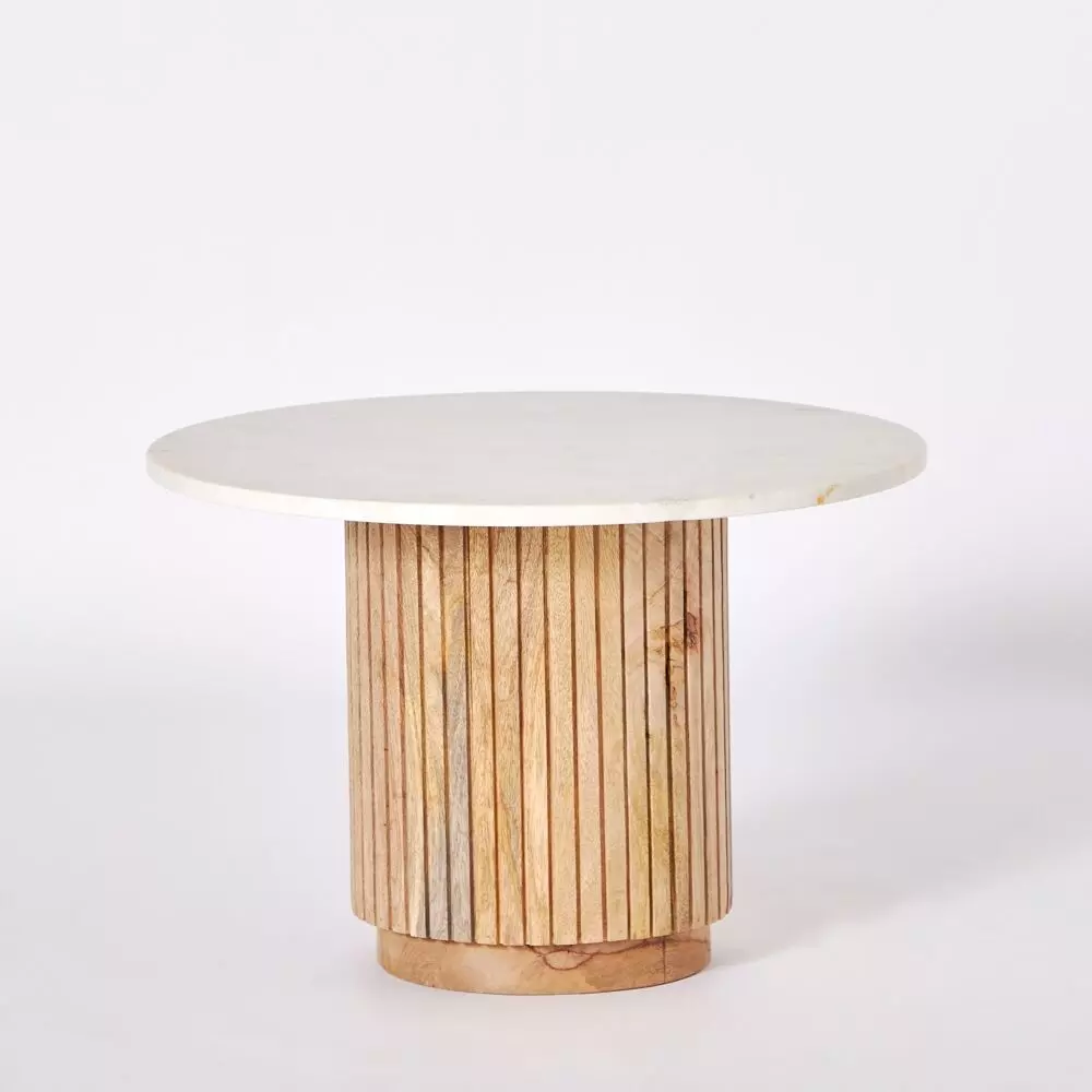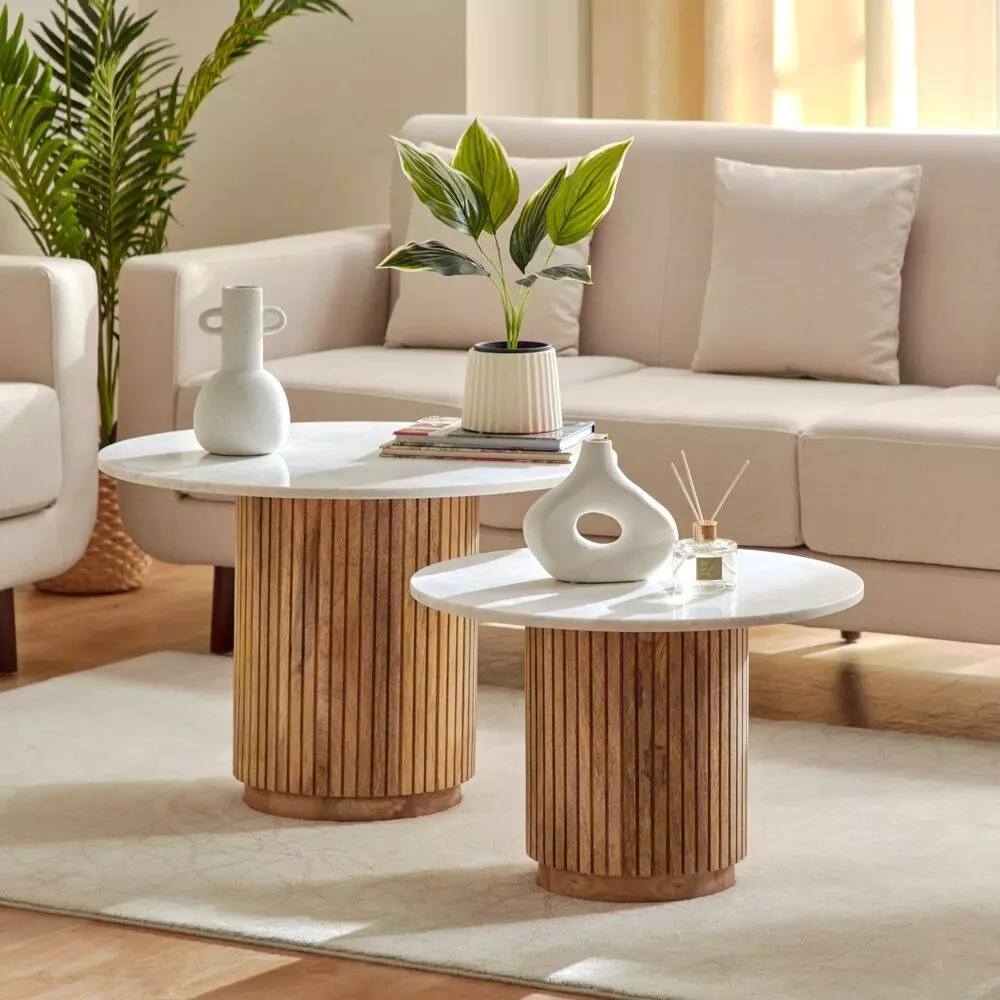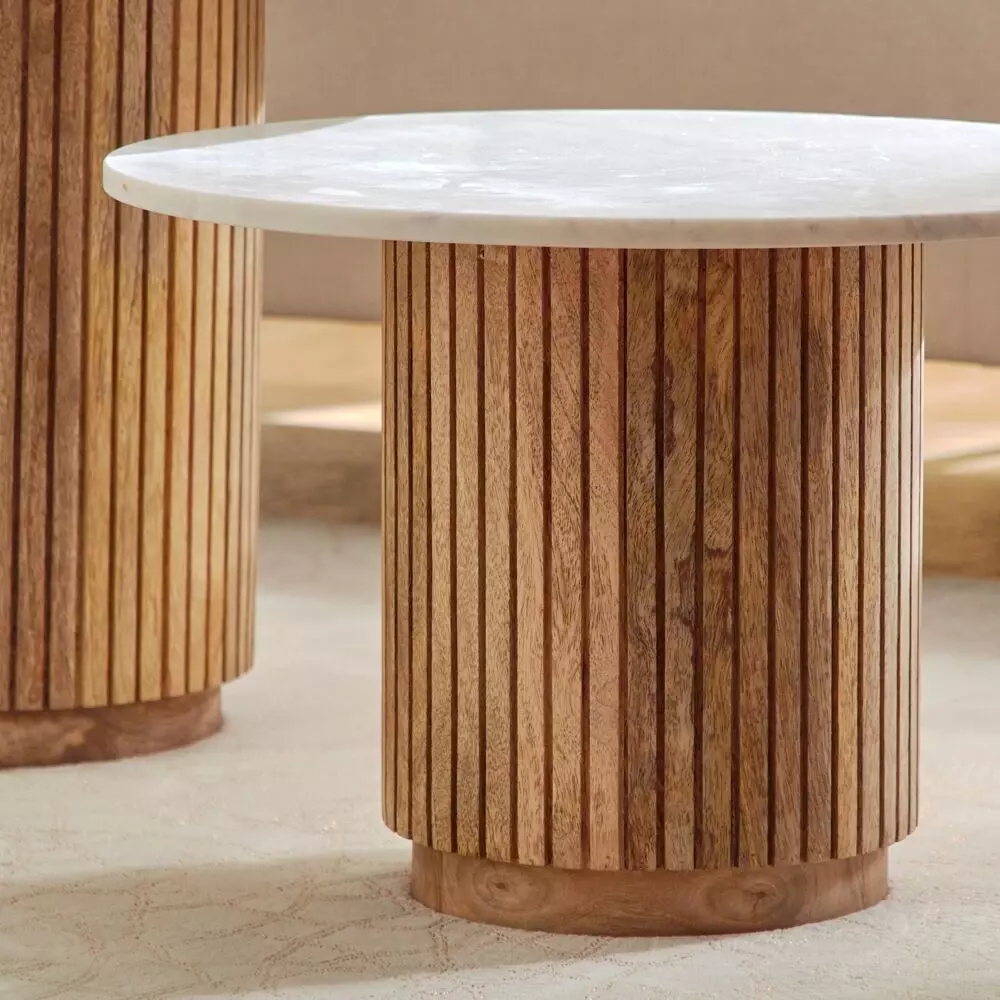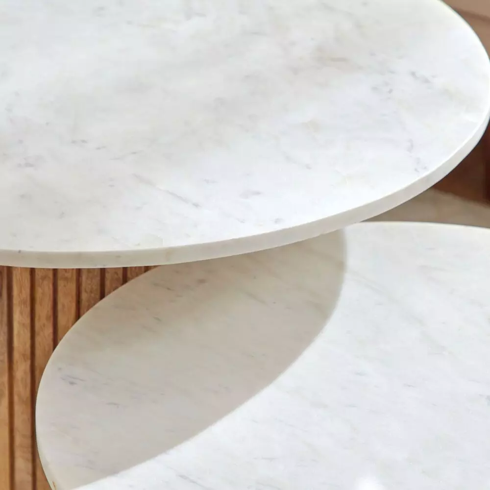 أنت تراجع:طاولة قهوة مستديرة من الرخام الأصلي من قطعتين مع قاعدة من الخشب الصلب