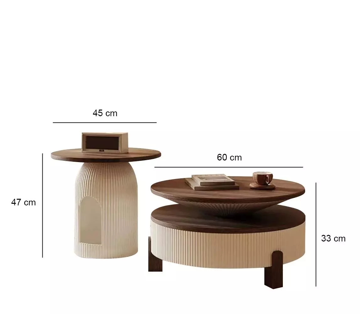 طاولة قهوة مع طاولة جانبية دائري اشل - كريمي وبني هي خيارك النسب اذا كنت تبحث عن الفخامة والذوق في منتج واحد مصنوعة من اجود المواد والخامات لا تتردد واحصل عليها