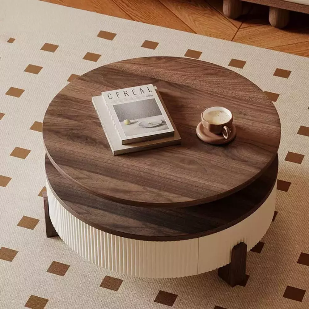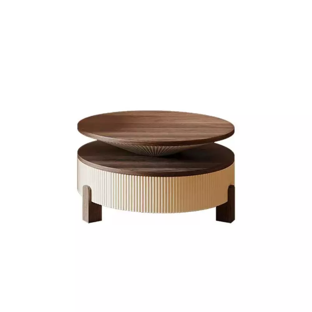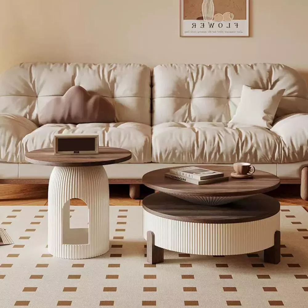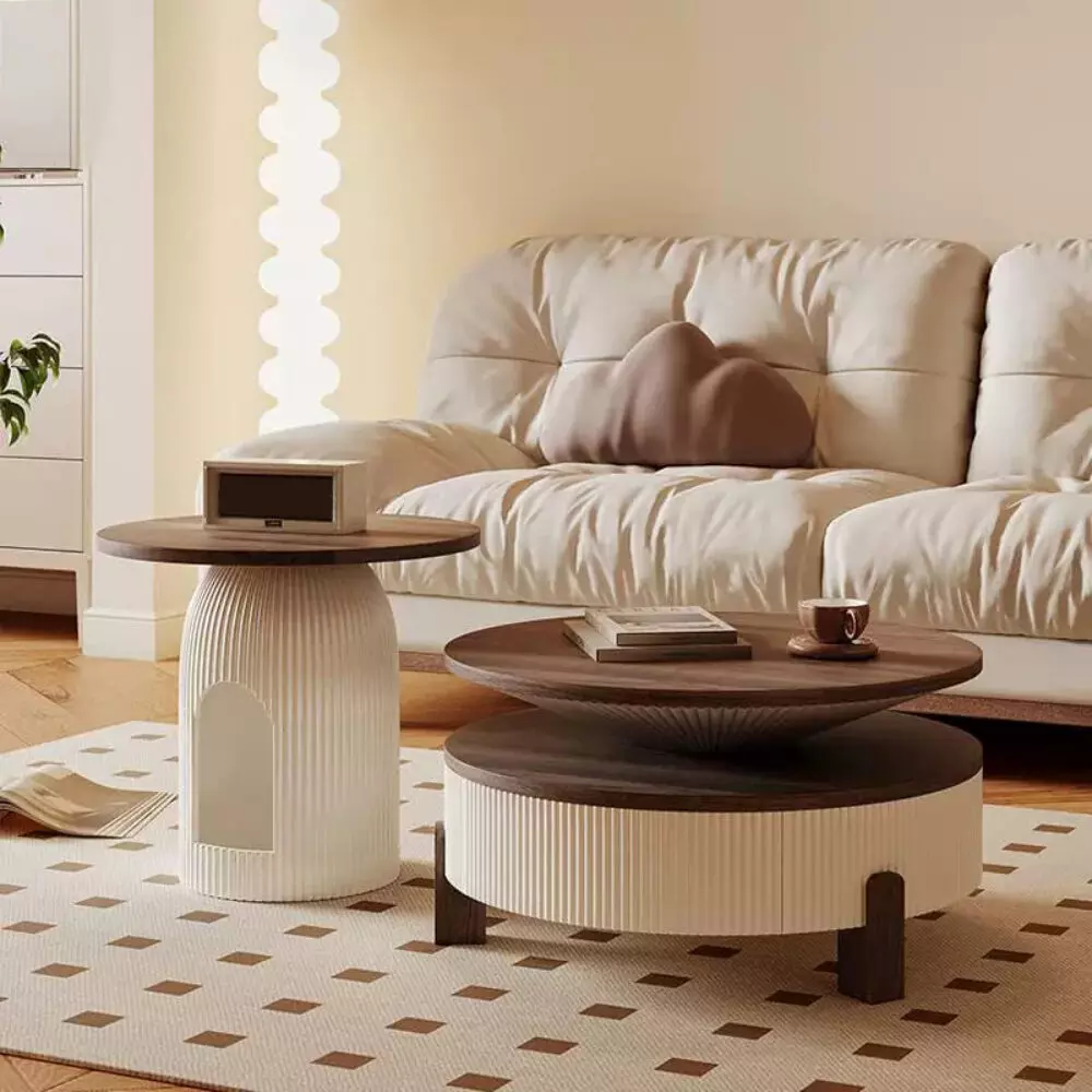 طاولة قهوة مع طاولة جانبية دائري اشل - كريمي وبني