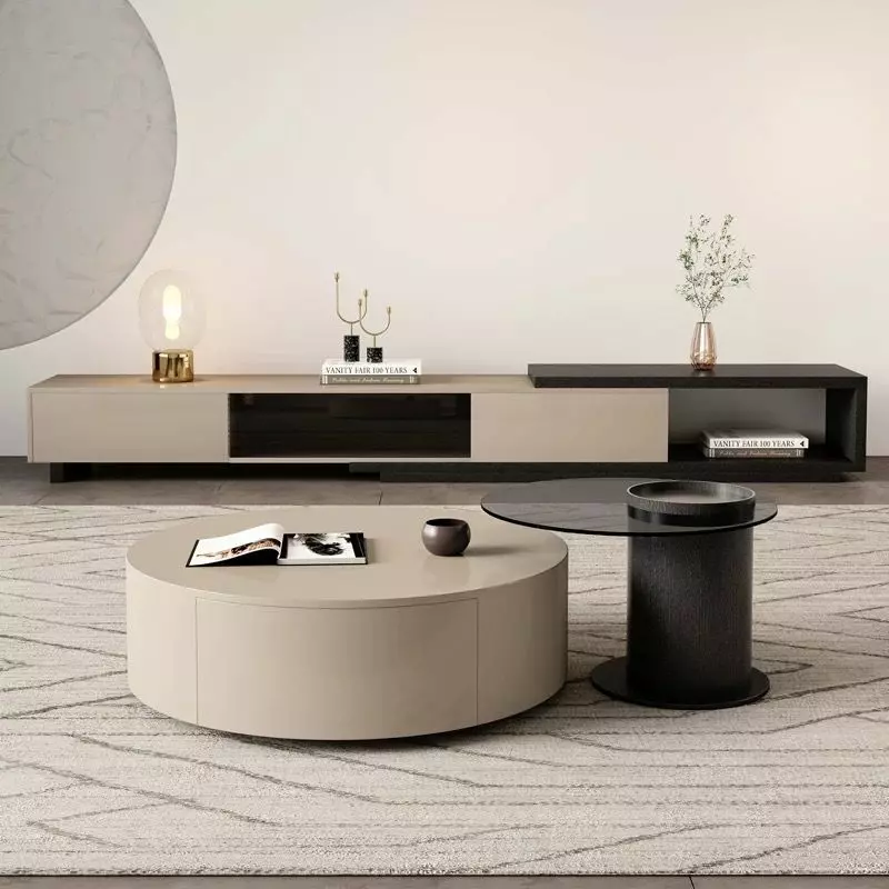 طاولة قهوة مودرن من جزئين بريانكا - بيج وأسود