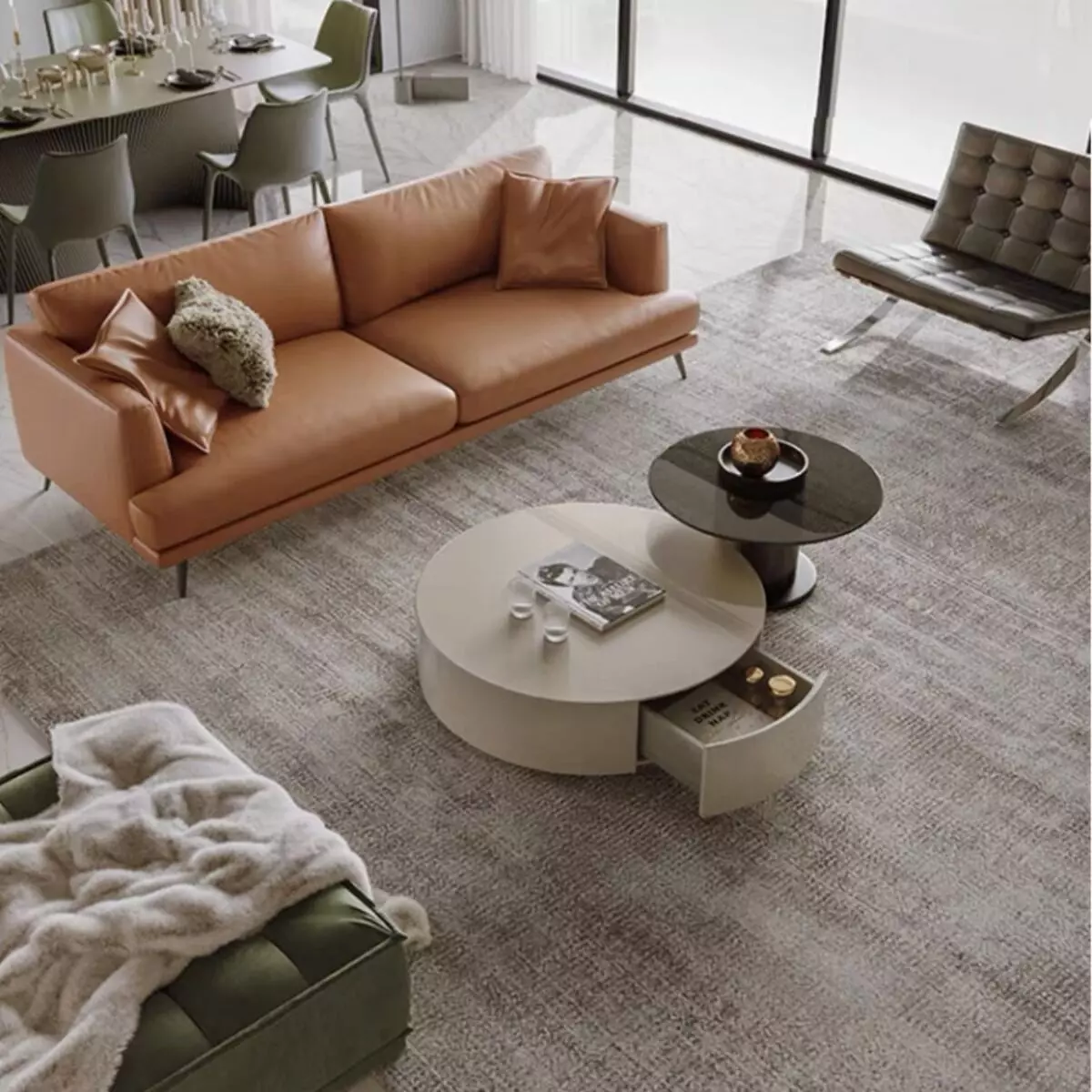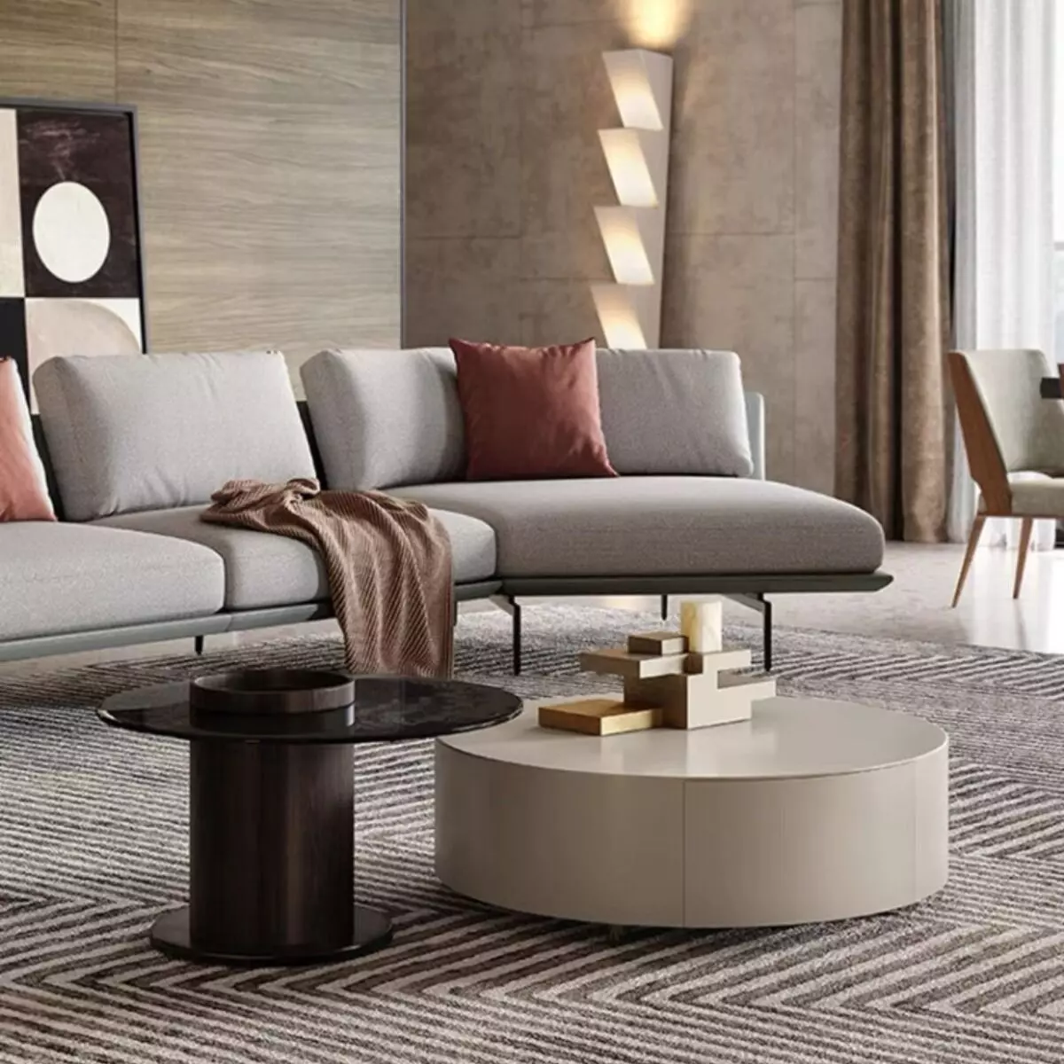 • تتضمن الطاولة الدائرية الاقل ارتفاعاً درجاً يمنحها خصائص تخزينية لتوضيب الكتب والمجلات والمقتنيات المختلفة التي تحتاجها في الحياة اليومية.