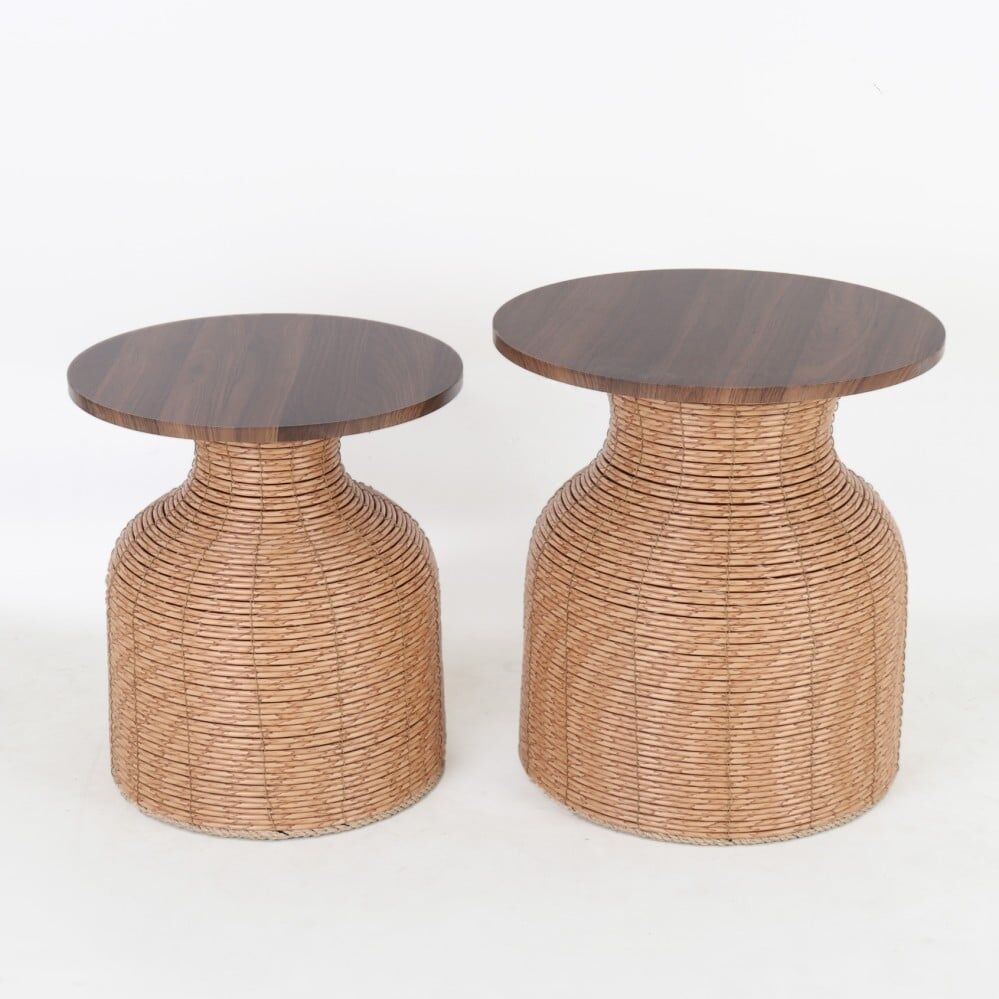 | مقاسات المنتج | طاولة القهوة : القطر 45 سم * الارتفاع 50 سم * الوزن 3.15 كع , الطاولة الجانبية : القطر 40 سم * الارتفاع 45 سم * الوزن 2.55 كغ |