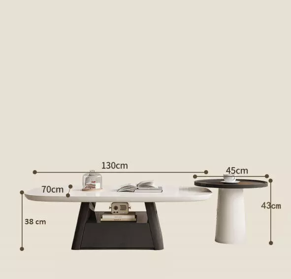 | مقاسات المنتج | طاولة القهوة:العرض130,العمق:70,الارتفاع:38 الطاولة الجانبية: القطر:45,الارتفاع:43 |