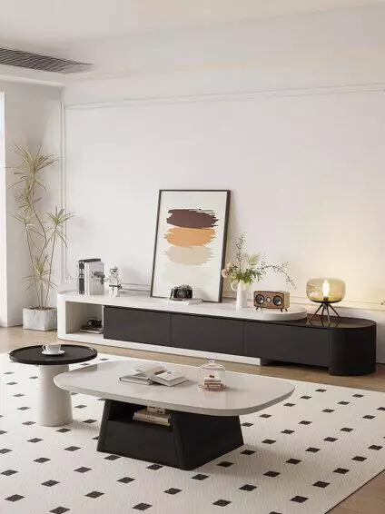 يتميز الطقم بجمع اللون الأبيض والأسود بتناسق رائع، مما يضفي لمسة من الرقي والتوازن على مساحتك الداخلية.