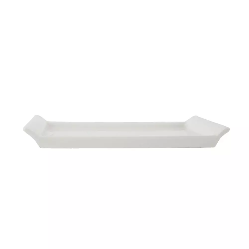 طبق تقديم مستطيل الشكل مصنوع من البورسلان باللون الأبيض, مناسب لإحتواء مختلف الأصناف وإختيار مثالي لتقديم وتنسيق الأطعمة بشكل جميل ومنظم.