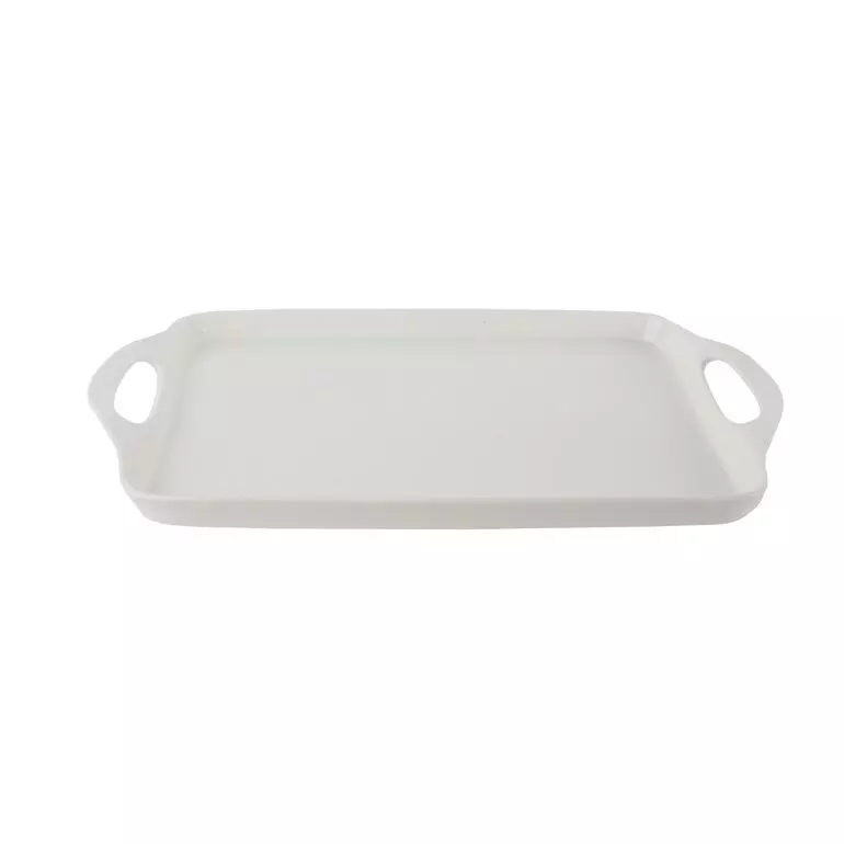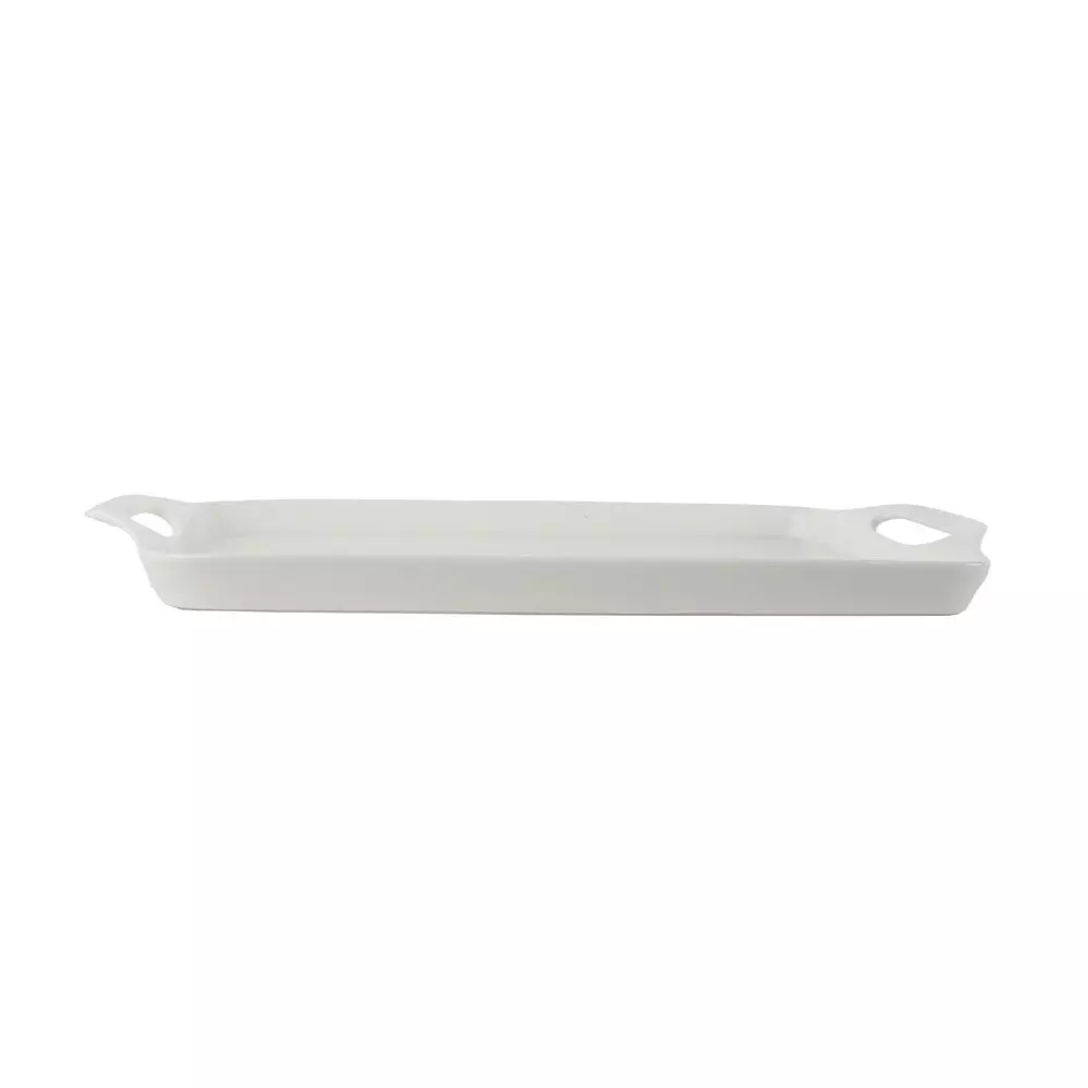 طبق تقديم مستطيل الشكل مصنوع من البورسلان باللون الأبيض ذو عمق مناسب لإحتواء مختلف الأصناف, وهو إختيار مثالي لتقديم وتنسيق الأطعمة بشكل جميل ومنظم.