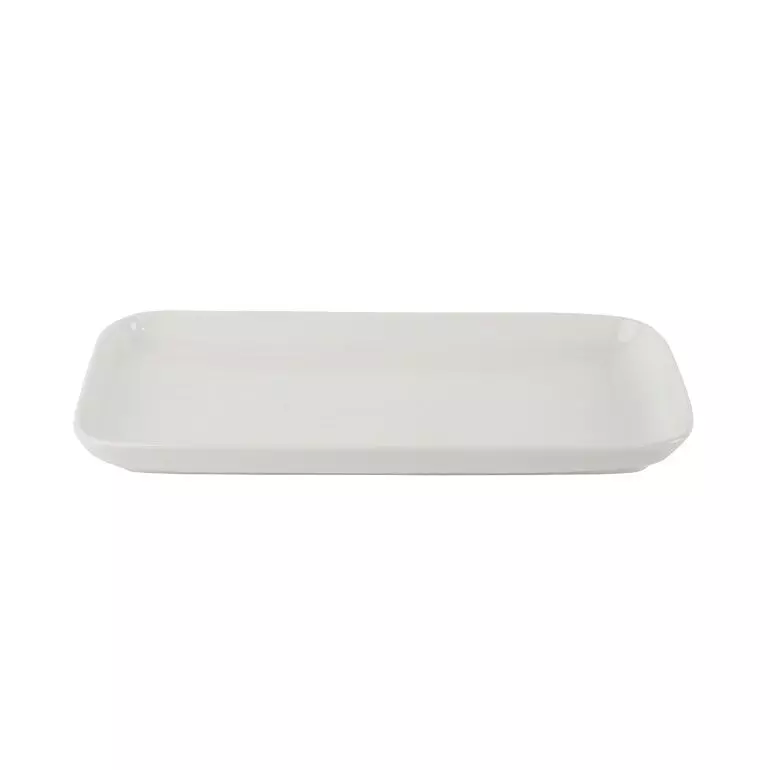 طبق مستطيل الشكل مصنوع من البورسلان باللون الأبيض مناسب لإحتواء مختلف الأصناف, وهو إختيار مثالي لتقديم وتنسيق الأطعمة بشكل جميل ومنظم.