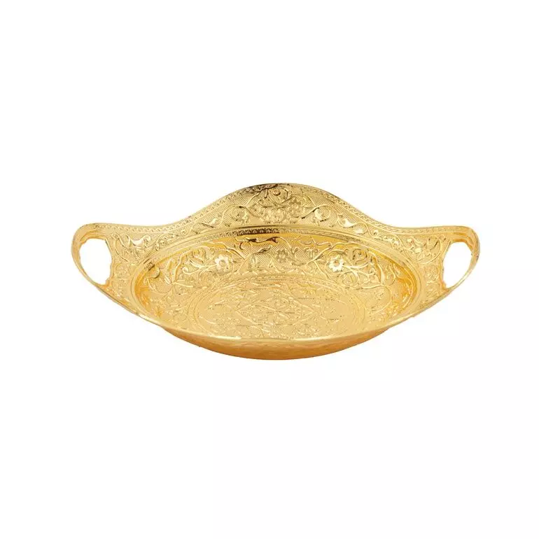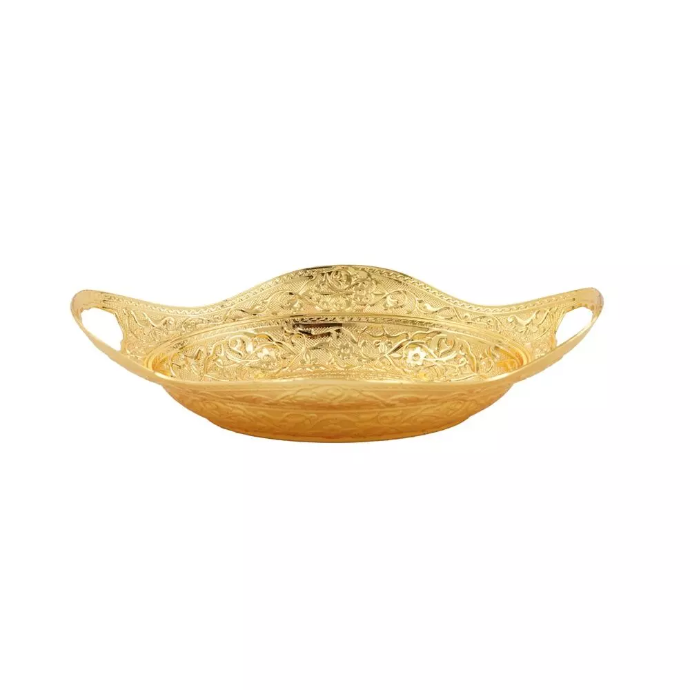 طبق تقديم مصنوع من الحديد باللون الذهبي, يمكن أن يستخدم للضيافة أو للديكور في غرفة المعيشة أو على طاولة الطعام.