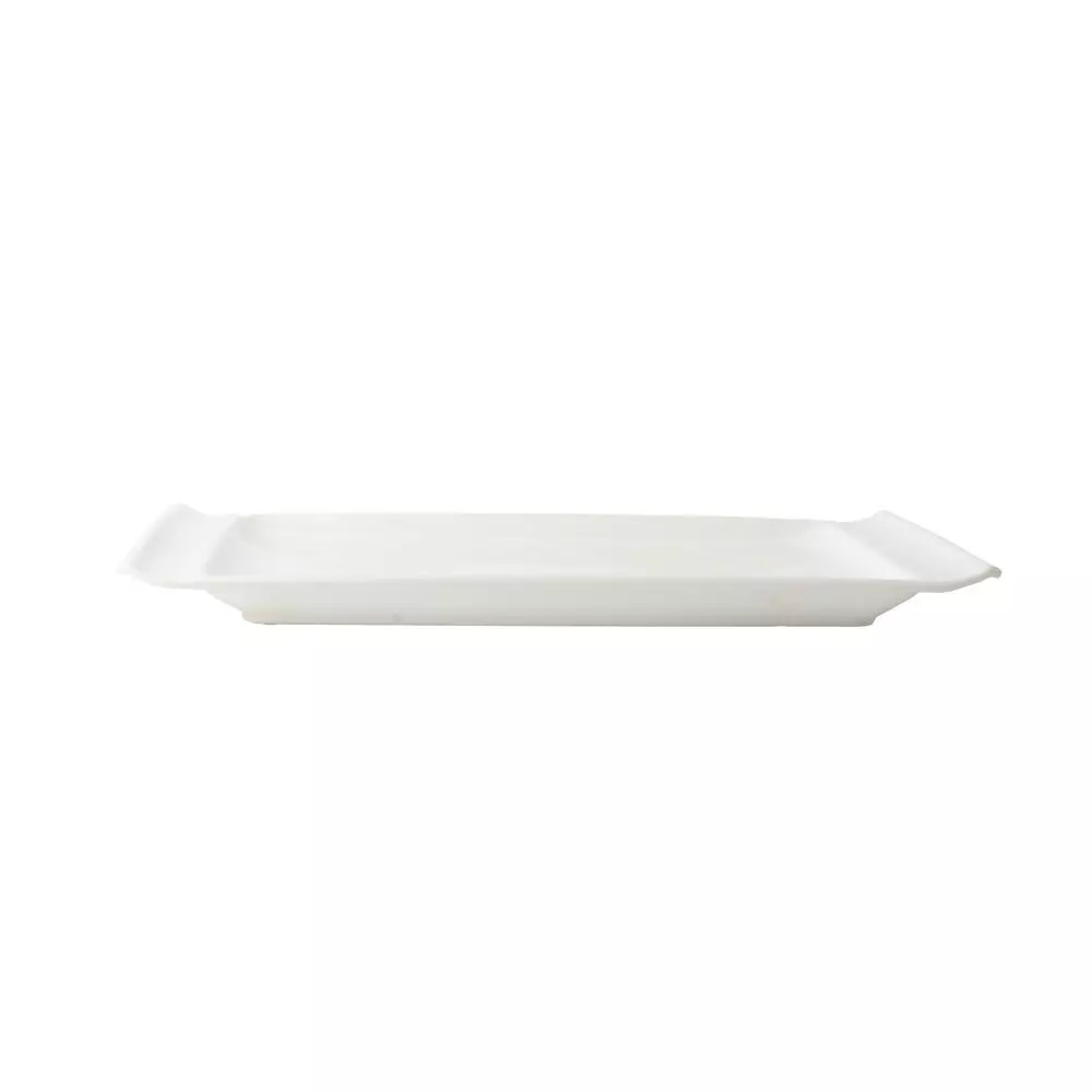 طبق تقديم مستطيل الشكل مصنوع من البورسلان باللون الأبيض, مناسب لإحتواء مختلف الأصناف وإختيار مثالي لتقديم وتنسيق الأطعمة بشكل جميل ومنظم.