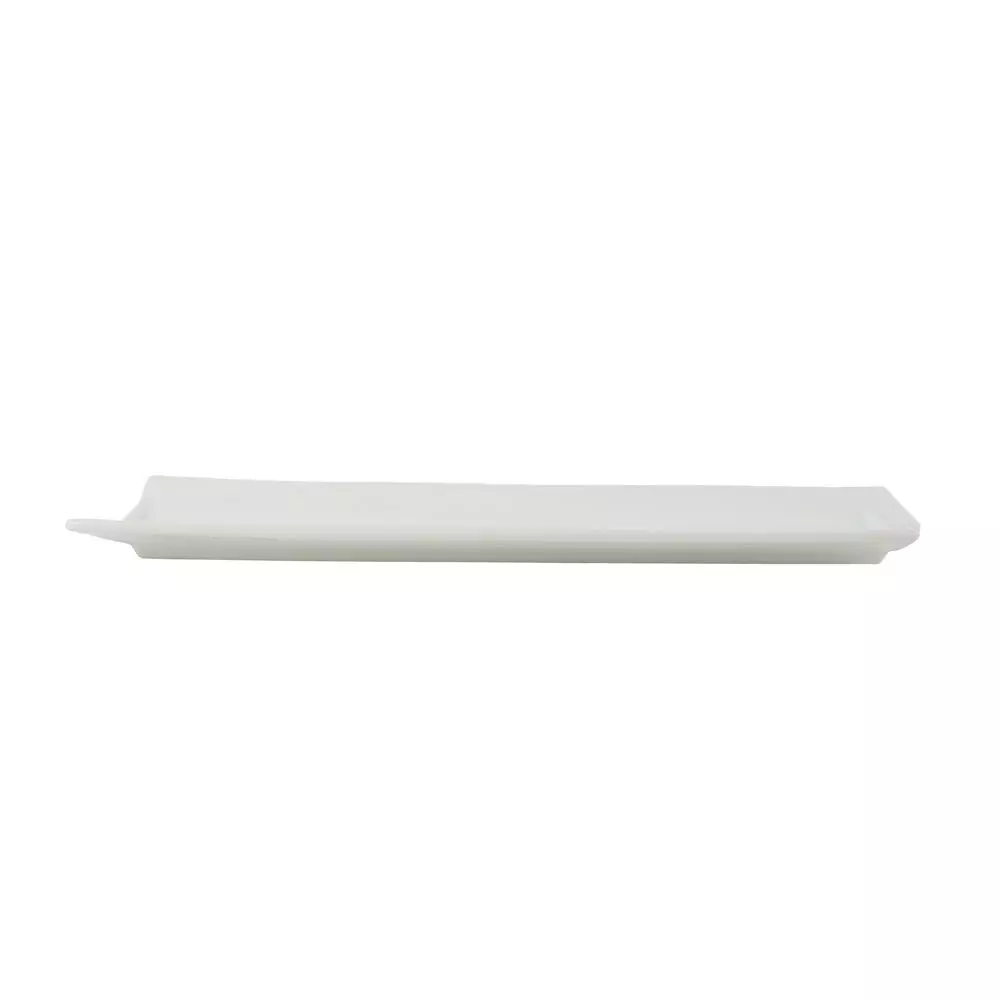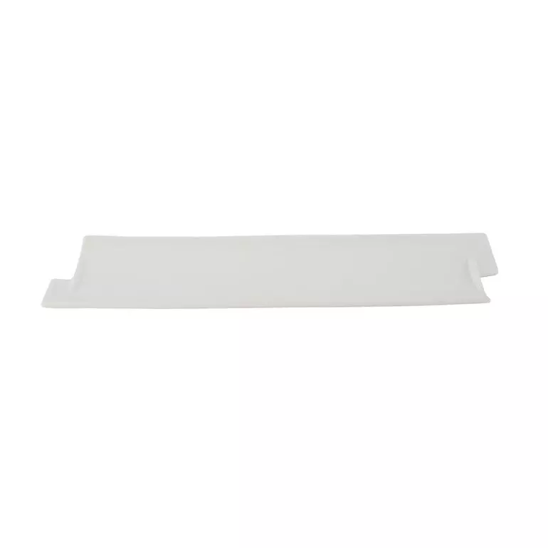 طبق تقديم مستطيل الشكل مصنوع من البورسلان باللون الأبيض, مناسب لإحتواء مختلف الأصناف وإختيار مثالي لتقديم وتنسيق الأطعمة بشكل جميل ومنظم.
