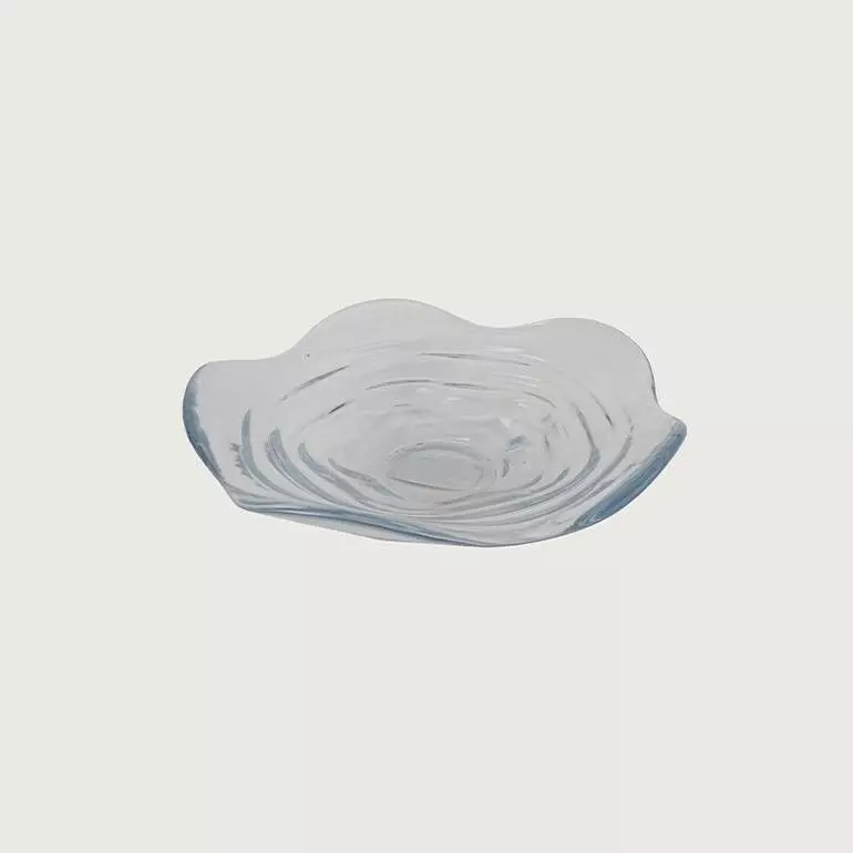 طبق تقديم مصنوع من الزجاج الشفاف, يمكن أن يستخدم للضيافة أو للديكور في غرفة المعيشة أو على طاولة الطعام.