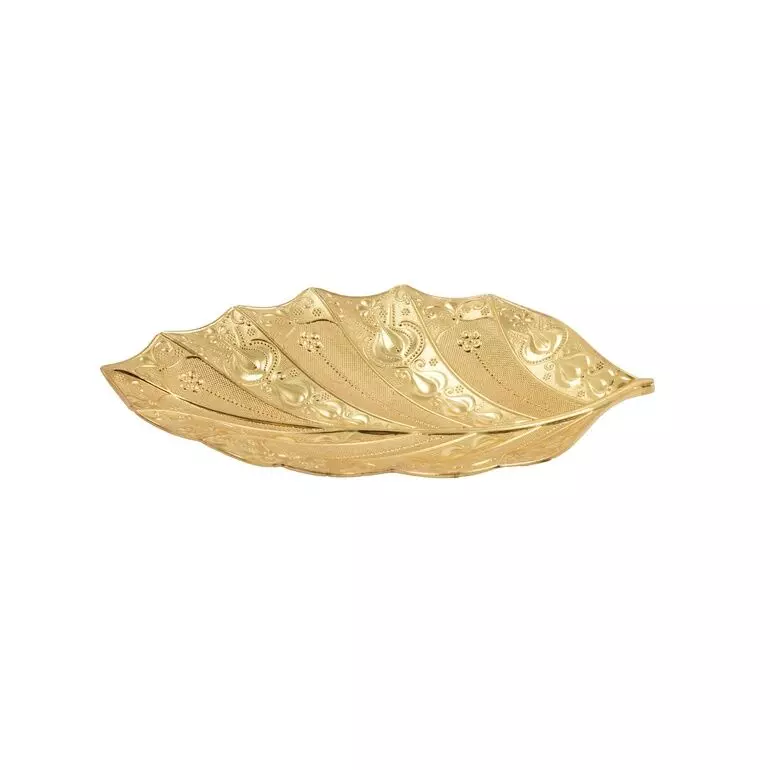 طبق تقديم ع شكل ورقة شجر ذهبي