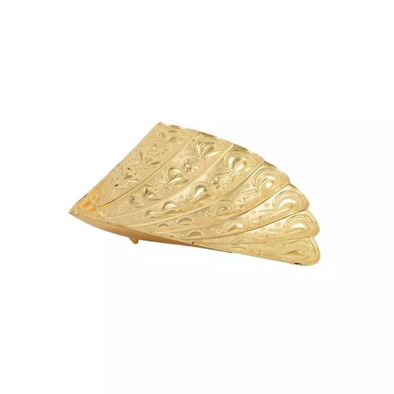 طبق تقديم مصنوع من الحديد باللون الذهبي, يمكن أن يستخدم للضيافة أو للديكور في غرفة المعيشة أو على طاولة الطعام.
