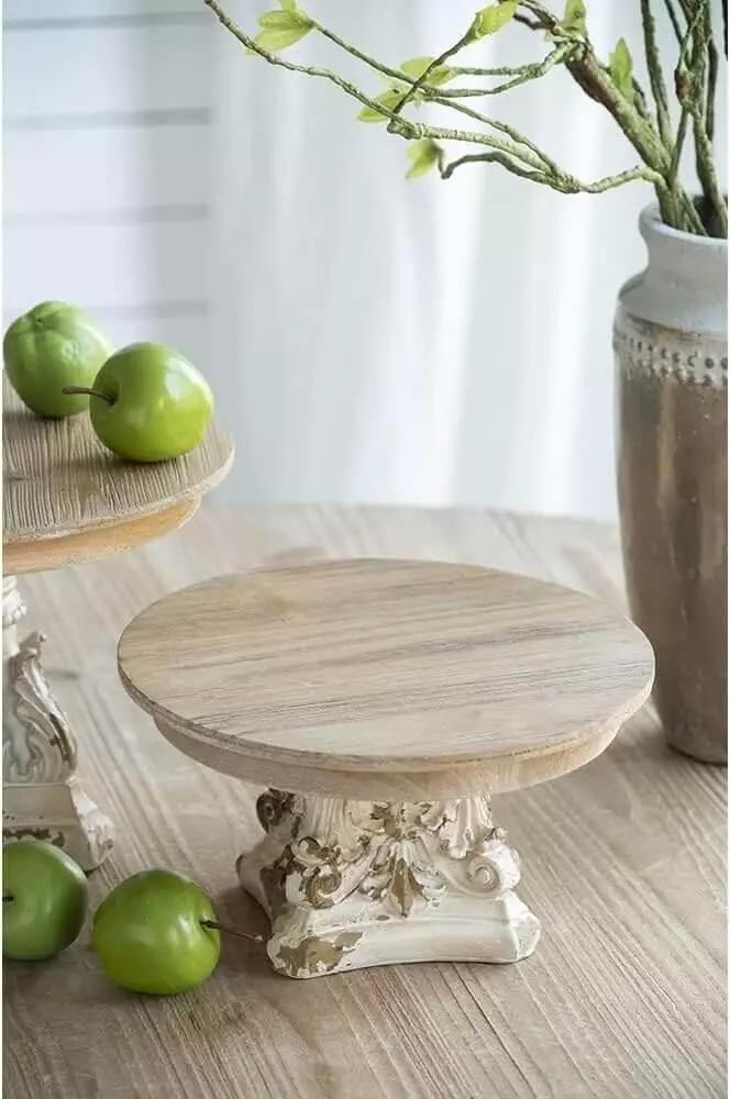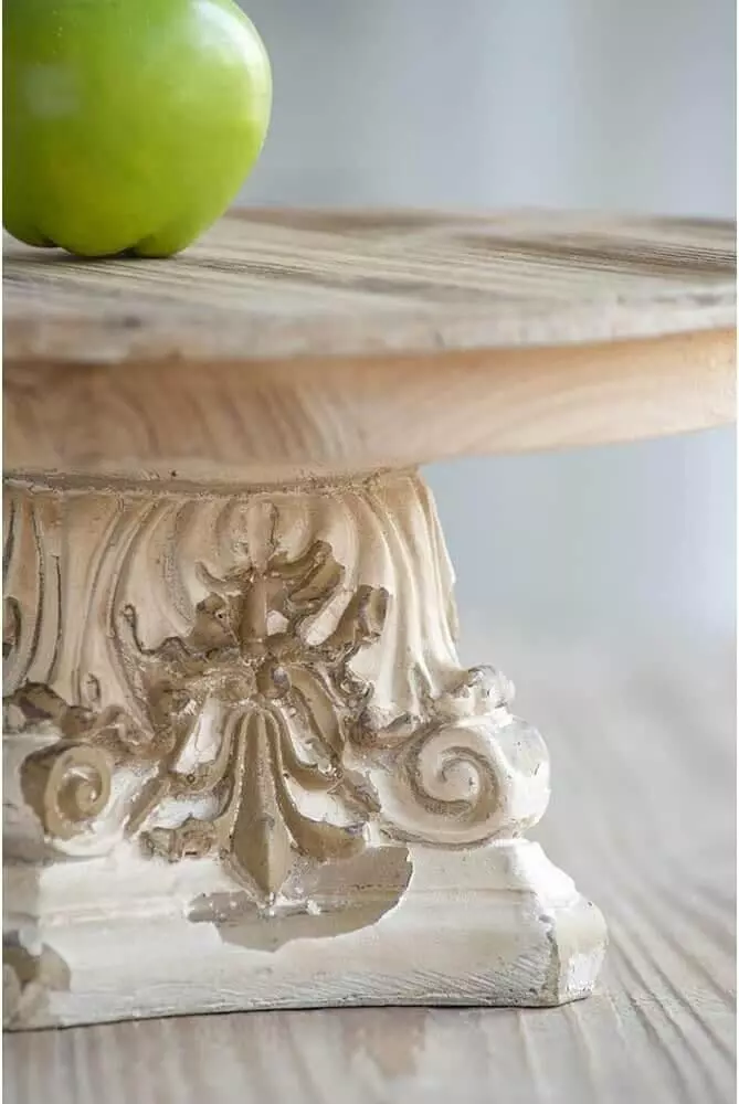 طبق تقديم مسطح بقاعدة مرتفعة مستديرة يتميز بإطلالة قديمة من الحرف اليدوية العتيقة.