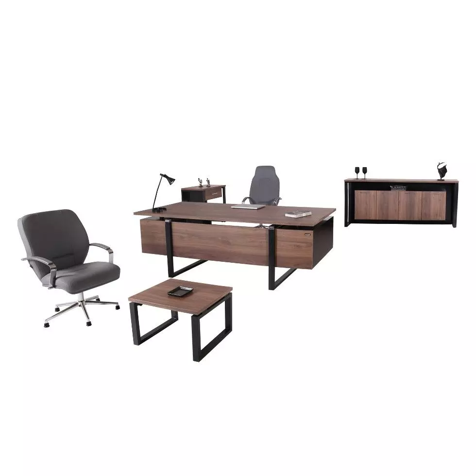 | يتضمن الطقم | مكتب + طاولة قهوة + خزانة كتب وملفات + طاولة جانبية مع درج |