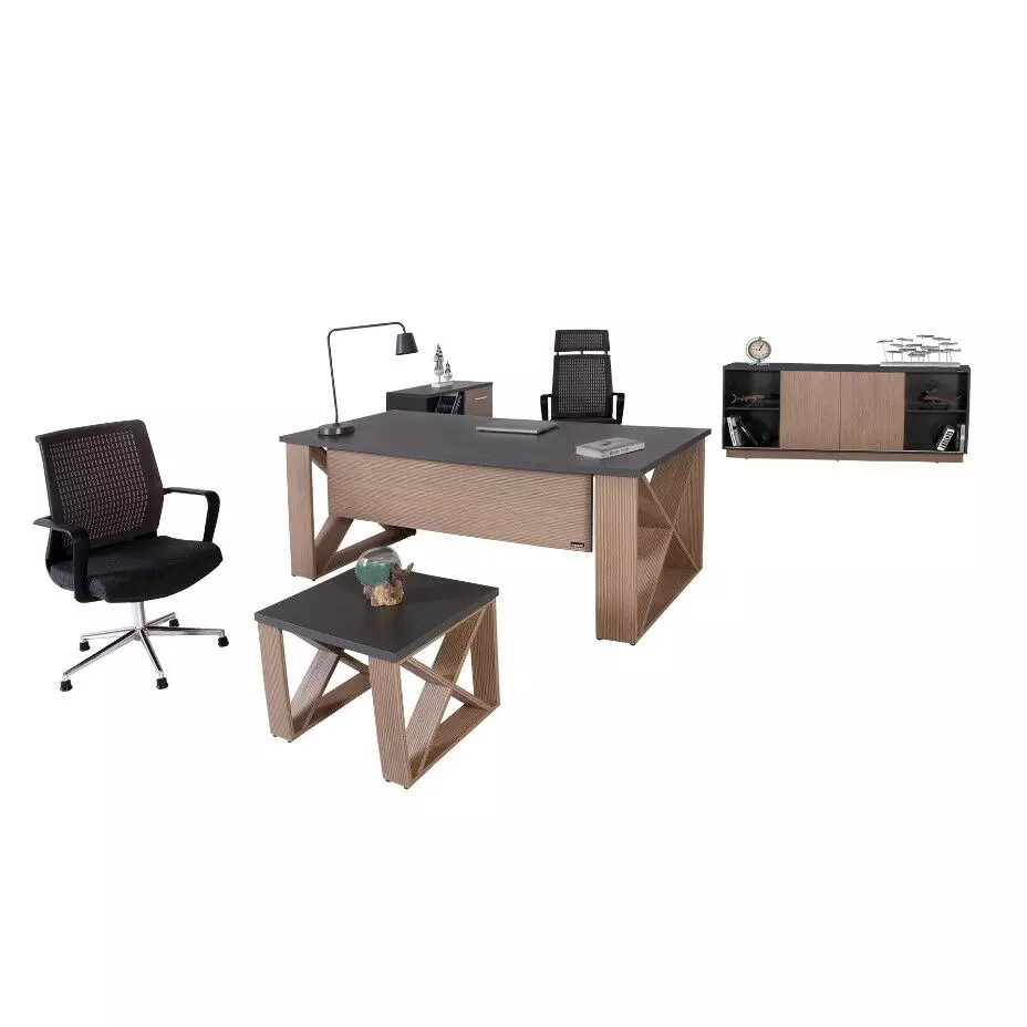 | يتضمن الطقم | مكتب + طاولة قهوة + خزانة كتب وملفات + وحدة ملفات جانبية |
