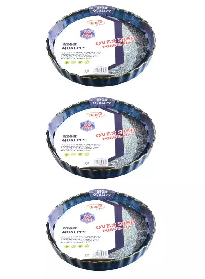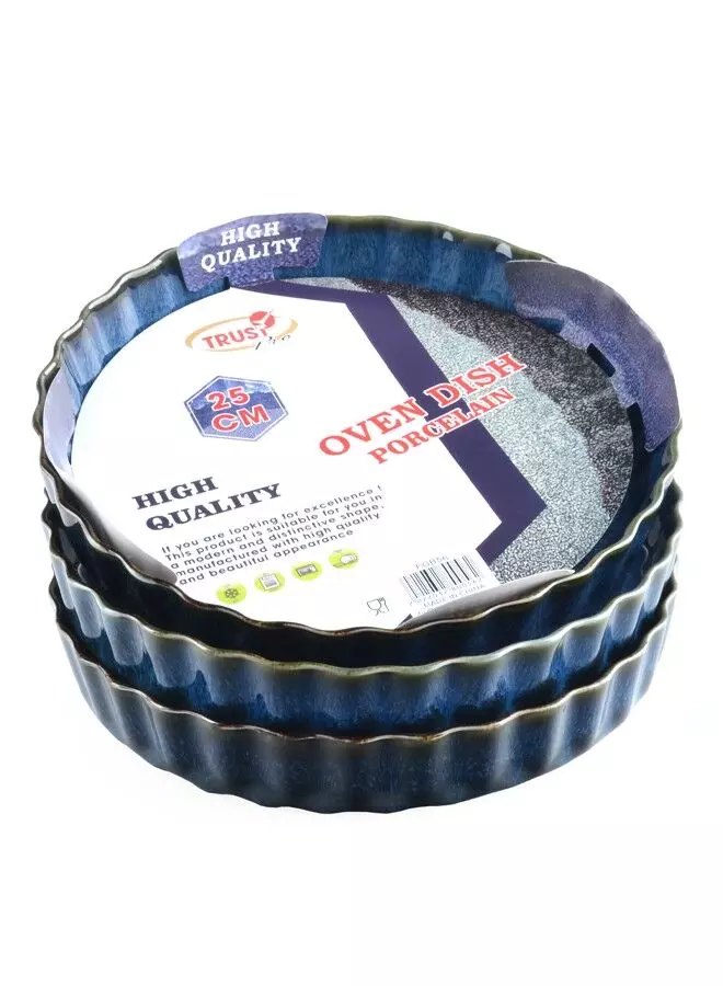 طقم أطباق فرن بورسلين دائرية 3 قطع 25 سم - أزرق