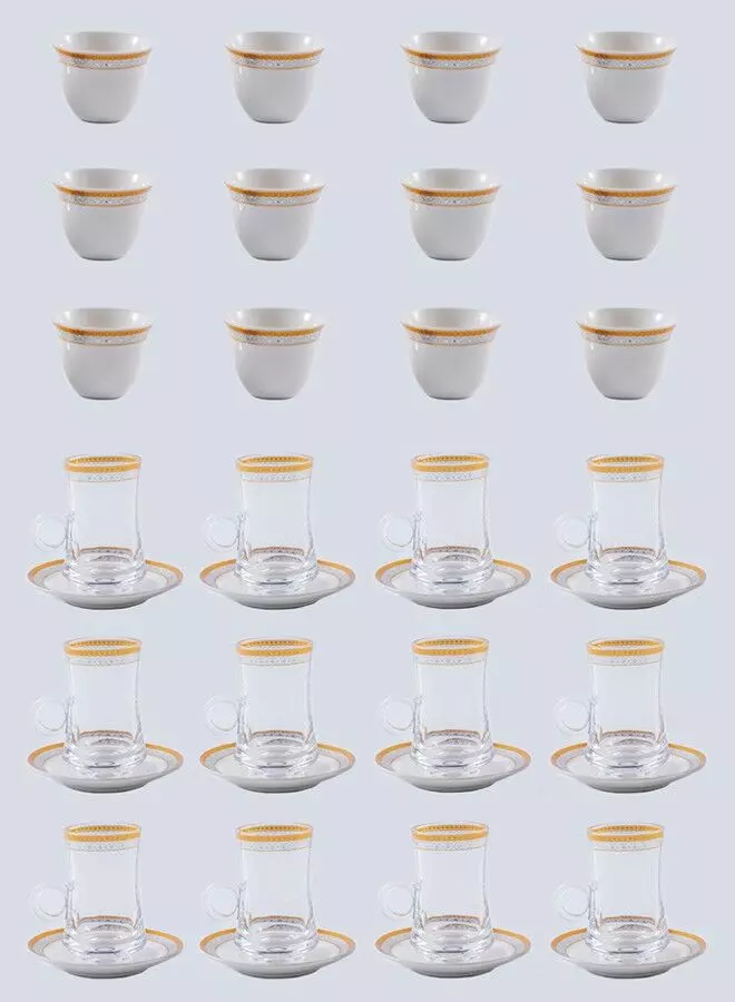 طقم أكواب شاي وقهوة أبيض وذهبي وشفاف ناسا