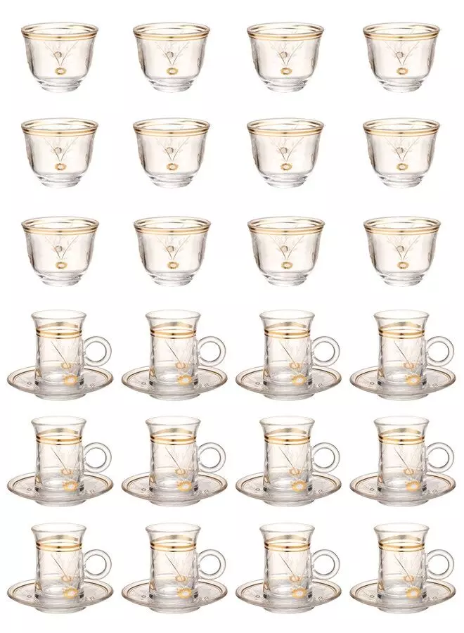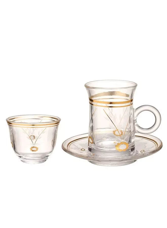 | يتضمن الطقم | 12 قطعة أكواب شاي 90 مل، 12 قطعة صحون 11.2 سم، 12 قطعة أكواب قهوة 70 مل. |