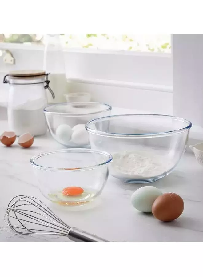 طقم أوعية خلط زجاجية شديدة المقاومة 3 قطع - شفاف