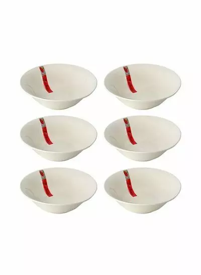 الميزات الأساسية طقم بتصميم عميق ملائم لحفظ كمية مناسبة من الطعام بداخله تتميز السلطانية بتصميمٍ واسع الحواف يقلل الانسكابات العرضية قاعدة مسطحة تحول دون القلب يتميز بجزء خارجي مصنوع بدقة ليتحمل الاستخدام المكثف مصنوعة من البورسلين لمقاومة التآكل وضمان المتانة المواصفات اسم اللون أبيض-أحمر