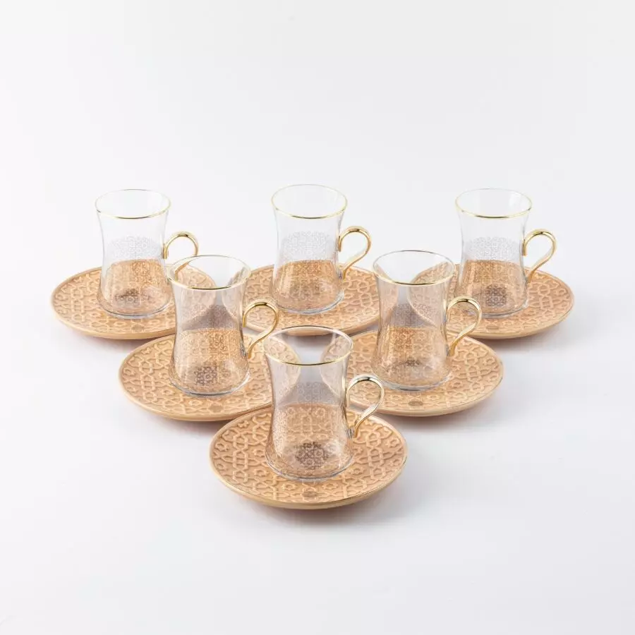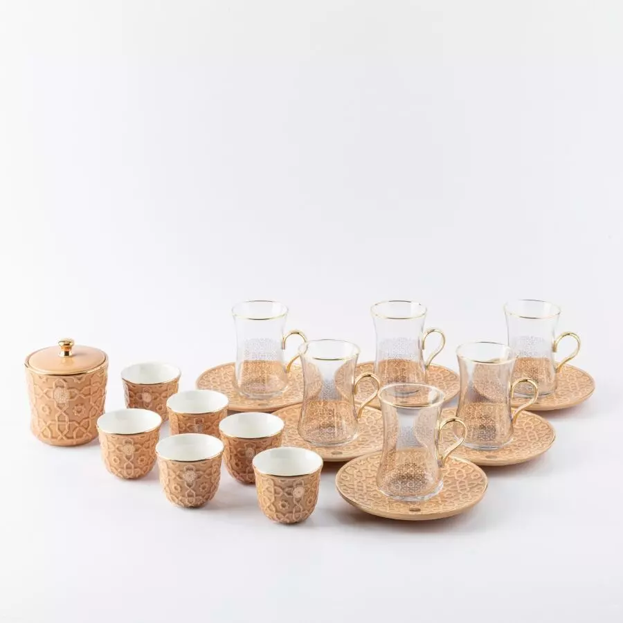 طقم بيالات شاي وقهوة سعودية من روزيت 19 قطعة - برتقالي