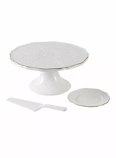 محتويات العلبة 1 حامل كيك - 1 سكين - 6 اطباق .