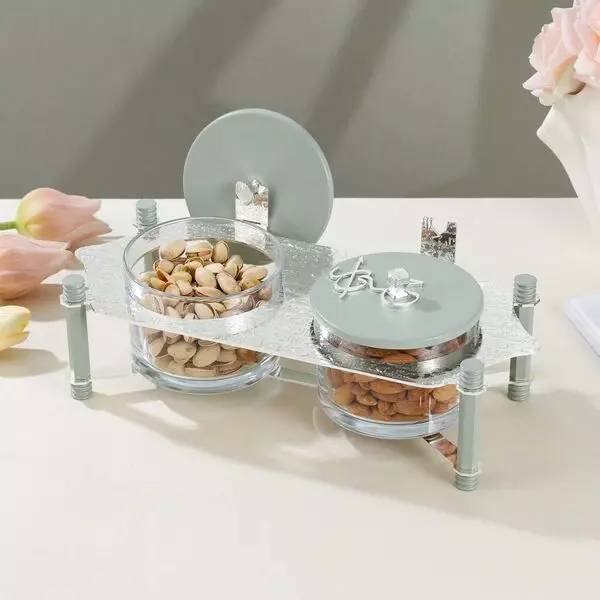 | يتضمن الطقم | 2 علبة تقديم مكسرات 1 صينية فقط |