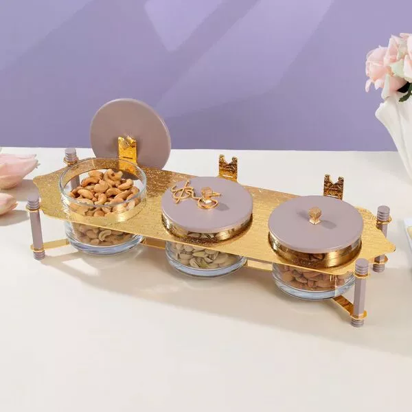 | يتضمن الطقم | 3 علبة تقديم مكسرات 1 صينية فقط |