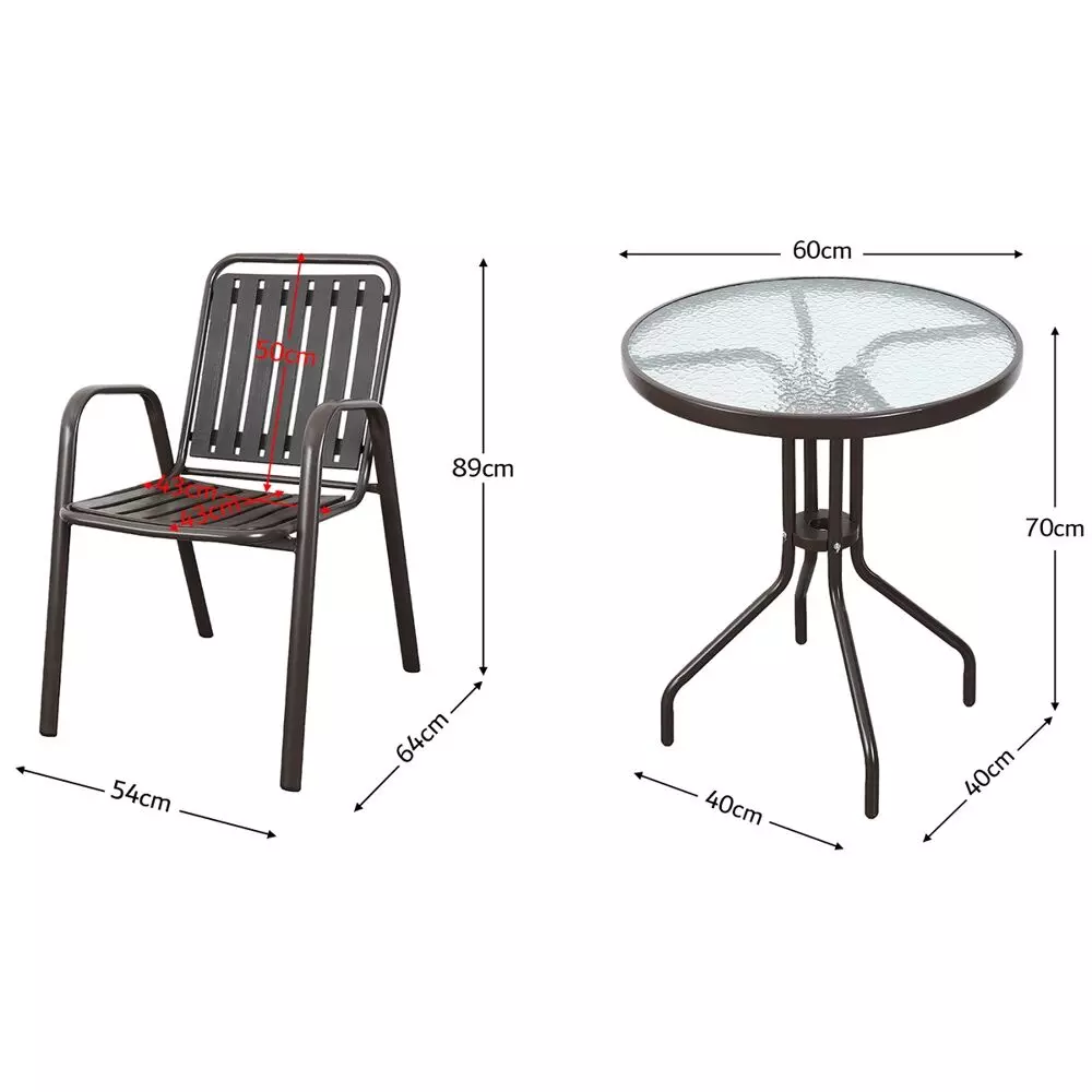 طاولة: ارتفاع 70- عرض 40 - عمق 40 - قطر السطح 60 كرسي : ارتفاع 89 - عرض 54 - عمق 64 |