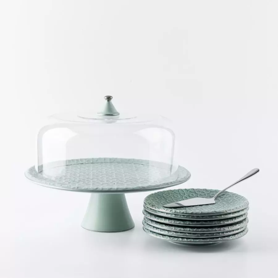 | يتضمن الطقم | 1 حامل كيك 1 غطاء 1 سكينة 6 صحون فقط |