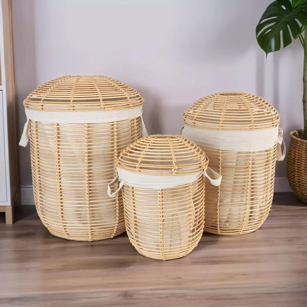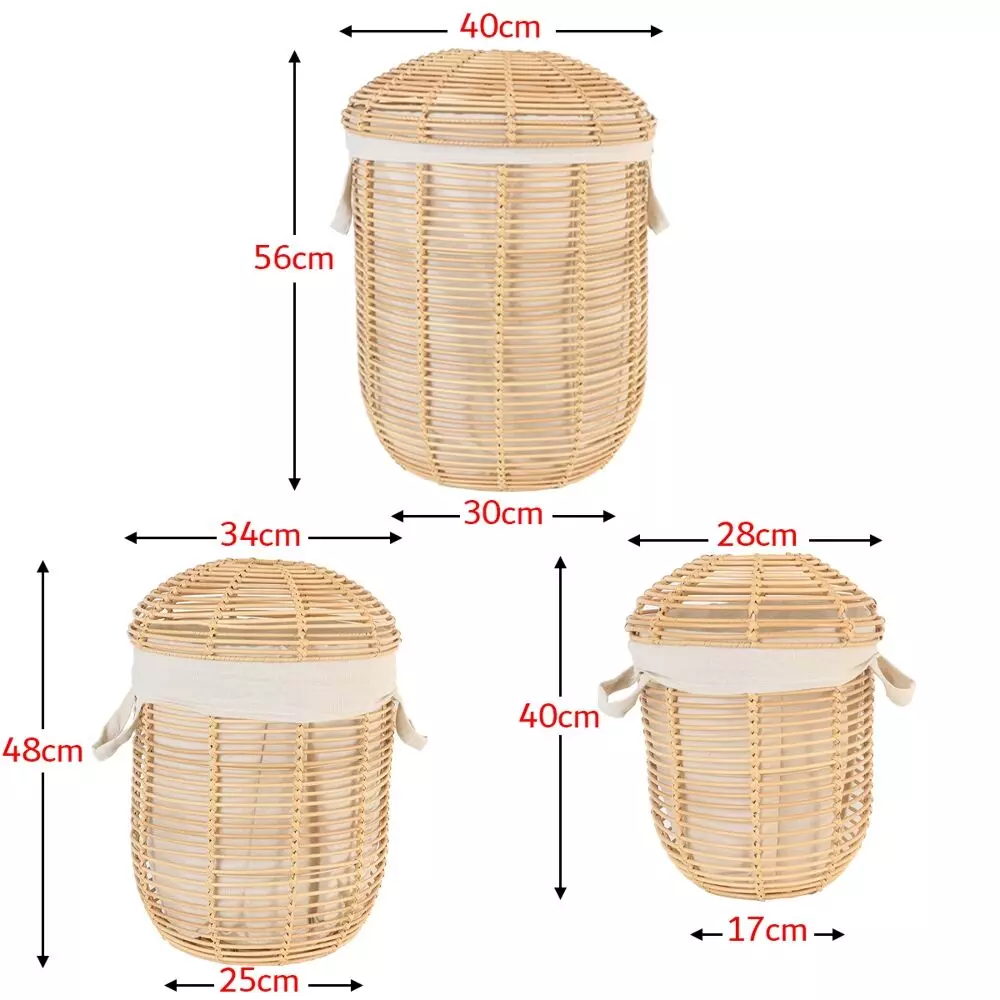 ابعاد السلة الكبيرة العرض العلوي 40 - العرض السفلي 30 - الارتفاع 56 ابعاد السلة الوسط العرض العلوي 34 - العرض السفلي 25 - الارتفاع 48 ابعاد السلة الصغيرة العرض العلوي 28 - العرض السفلي 17 - الارتفاع 40 |