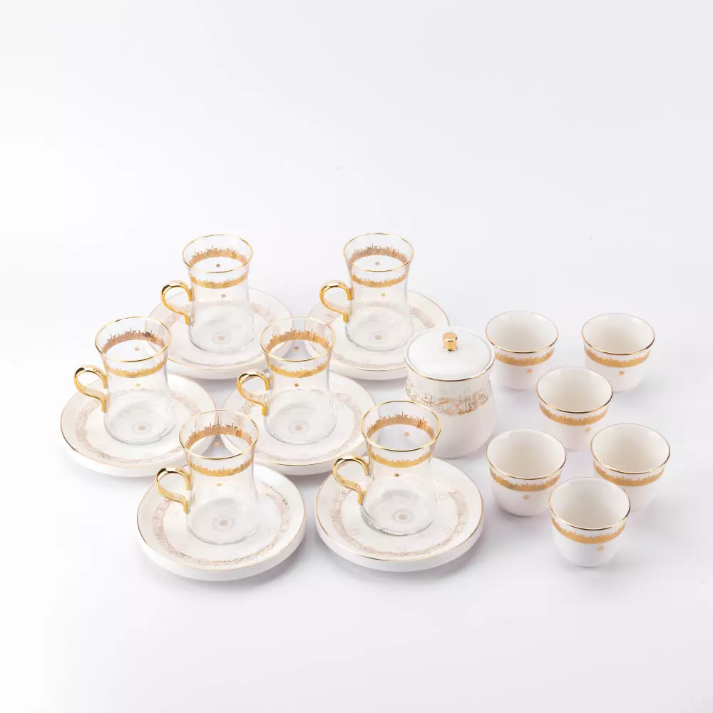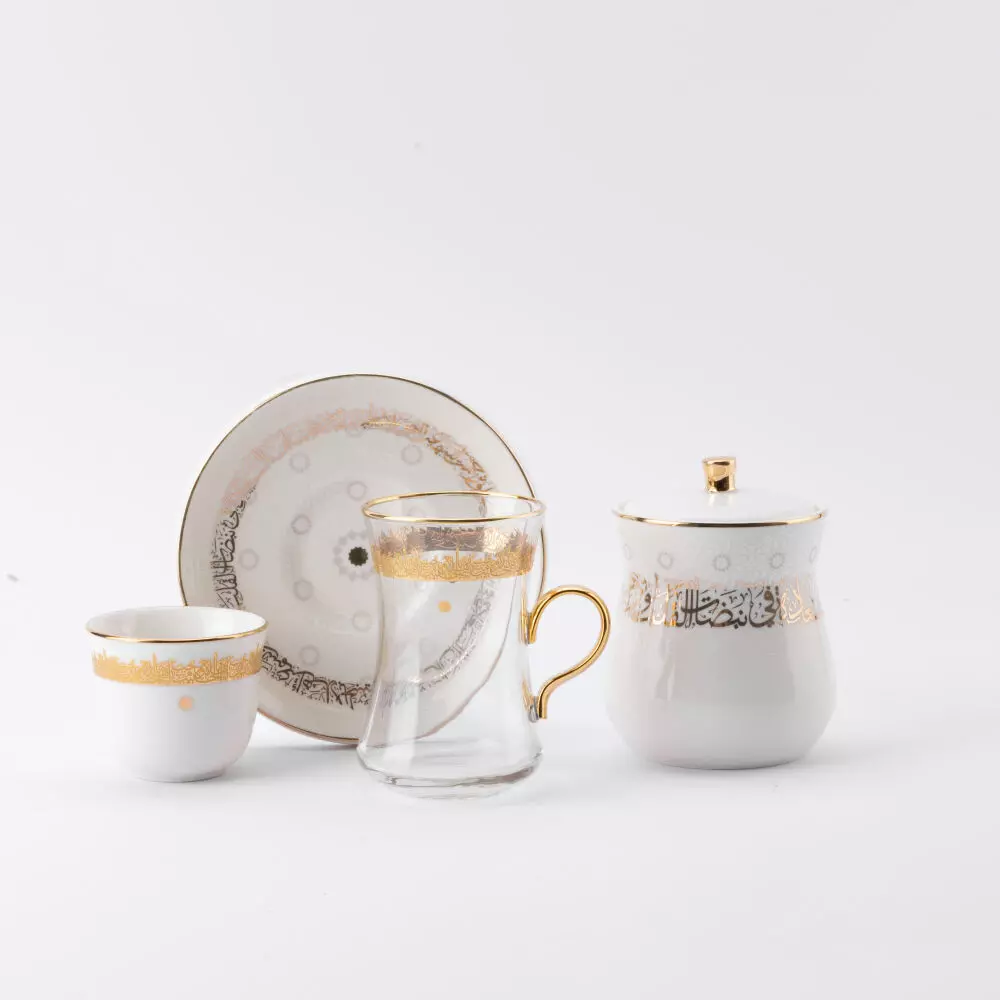 | يتضمن الطقم | 6 فناجين 6 صحون 6 فناجين قهوة سعودية ووعاء سكر فقط |